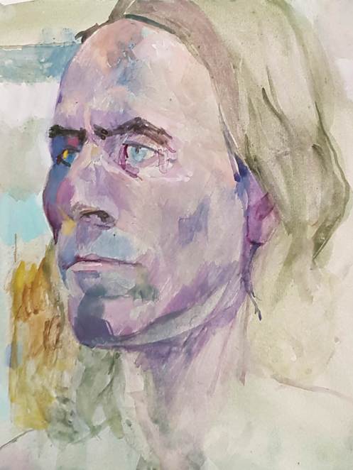 There’s a lot I like about posing for Hesketh Hubbard Art Society at Mall Galleries. Portrait modelling is satisfying work for a kindly, close-up crowd of talented devotees. Short poses of 15 minutes (just the once) and 30 minutes (pre-pandemic) attracted a bigger crowd of keen observants at centre stage in the main gallery. And long poses, well… that can be rather more detached and gruelling. Yup, I was back on ‘long’.