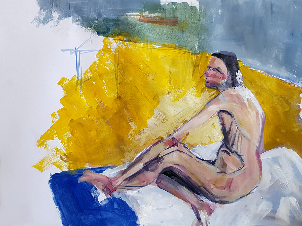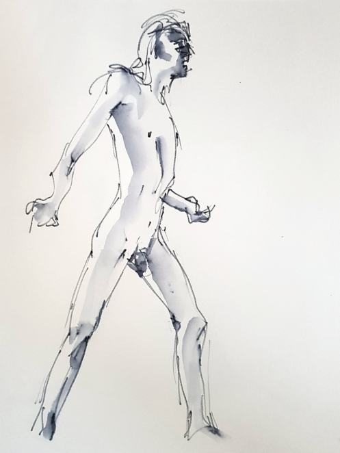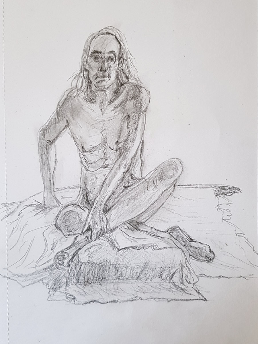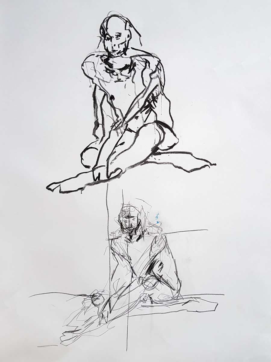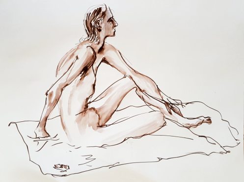 By my own misjudgement the first 40 minutes were a tad nippy. After attending to the heaters’ alignment and dragging them all a few inches closer, however, the latter half was comparatively snug. And therein lies much of what it is to be a life model; finding in each situation the optimum blend of artistry and discovery, intuition and practicality both to inspire and survive. Maybe that’s what all art is: inspiration and survival.