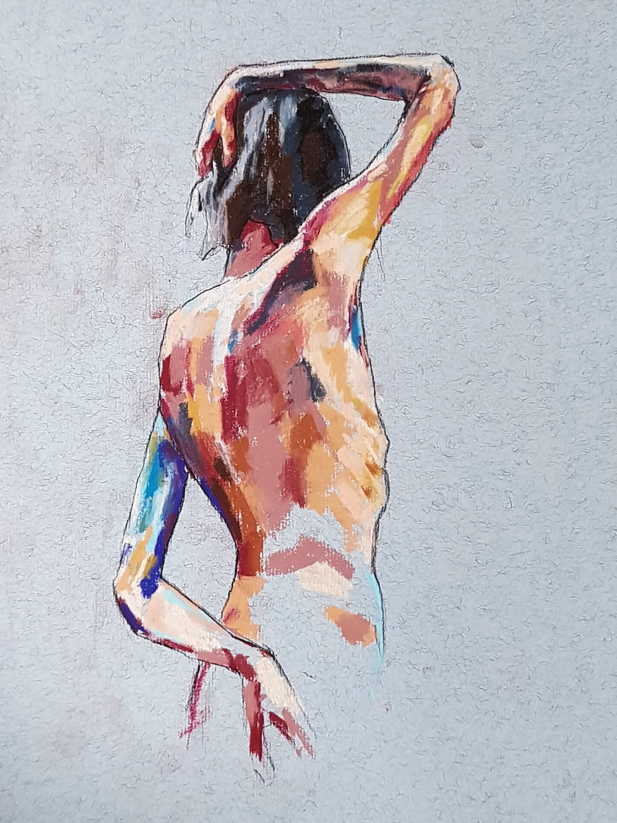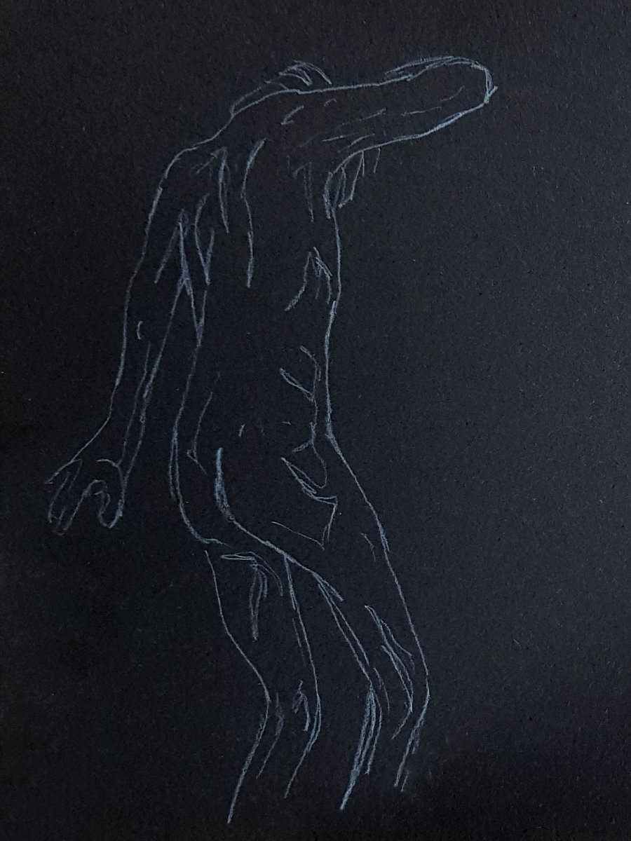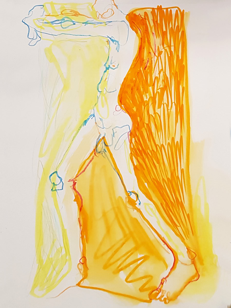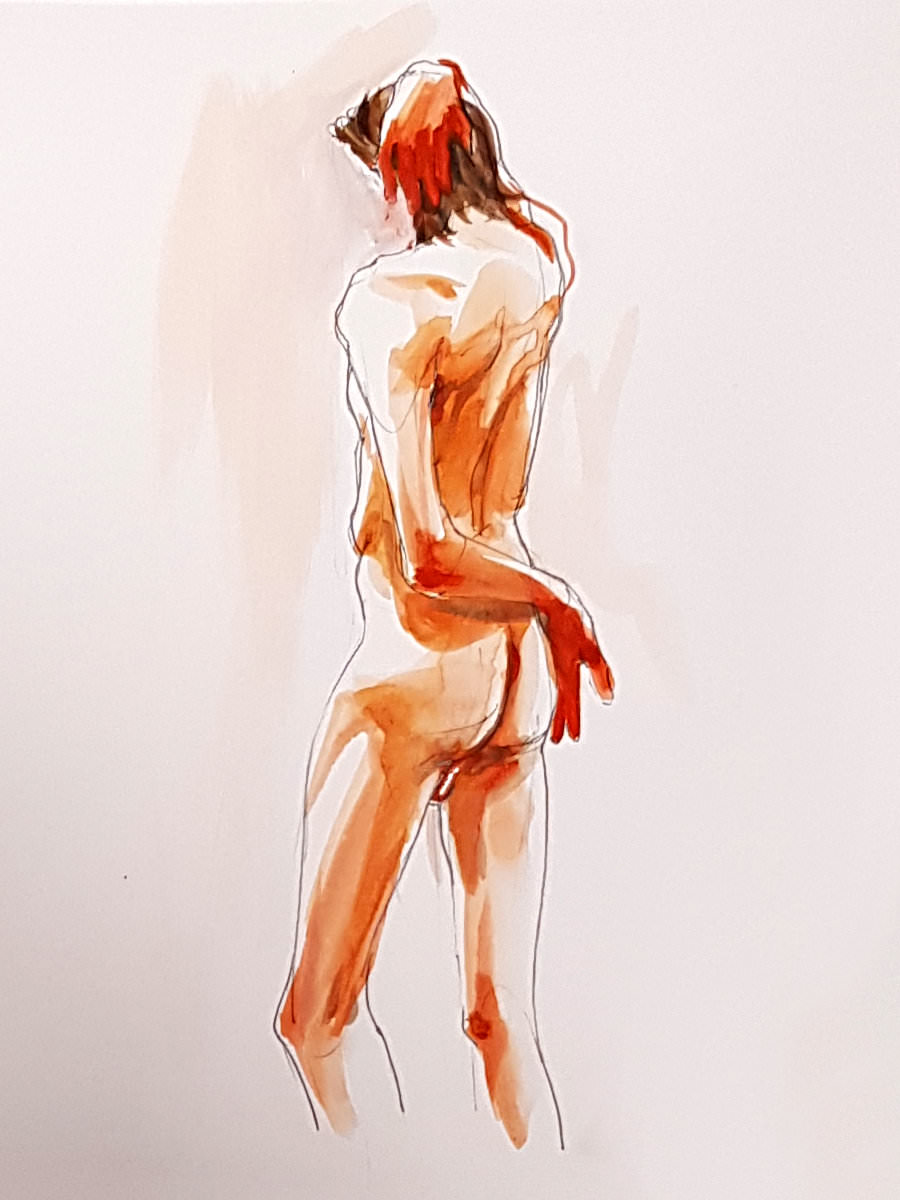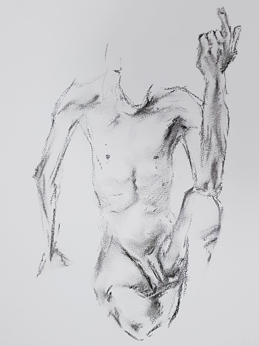 Three longer poses followed: 10 minutes sitting on the floor, 10 minutes upright, then 20 minutes on my backside again, albeit differently angled. Part of the challenge was not only to vary the poses in this session, but also to avoid repeating any I’d used my previous – very recent – visit.