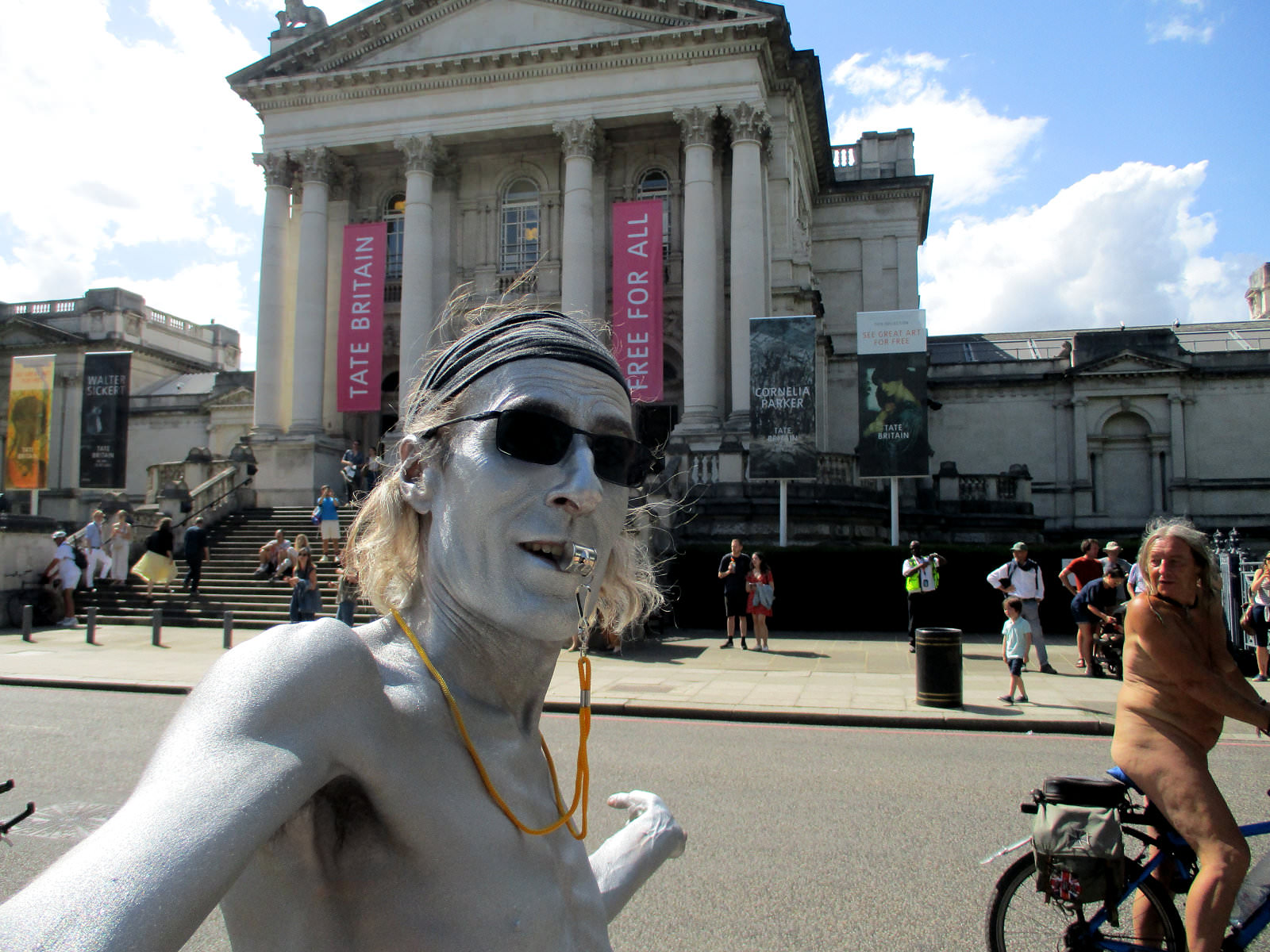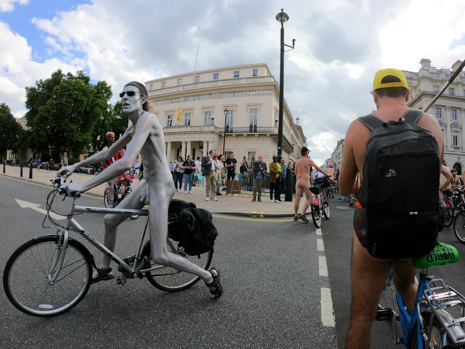 After cycling more 25km as a small posse of just 25 nude bodies, we suddenly found ourselves absorbed into a much larger group. Now, truly, I was ‘back in the pack’. We headed north on Millbank, passing Tate Britain, but only as far as the next crossing; Lambeth Bridge took us back south. We’d tasted just 10 minutes of north London.