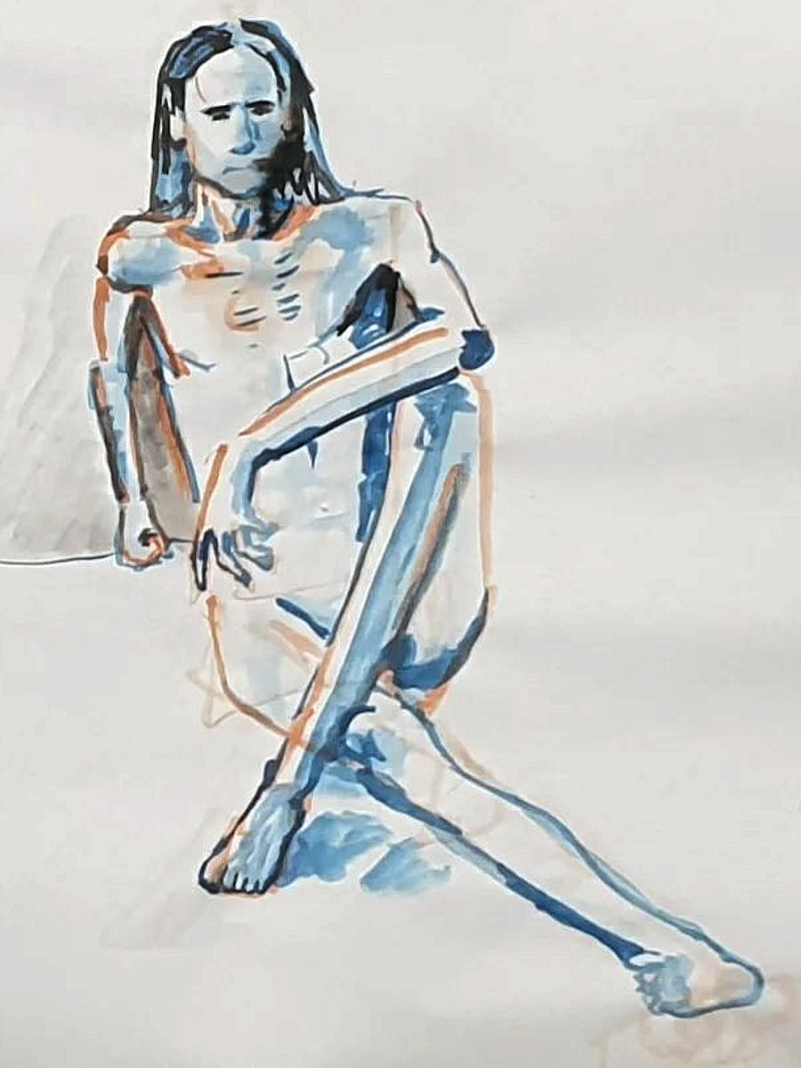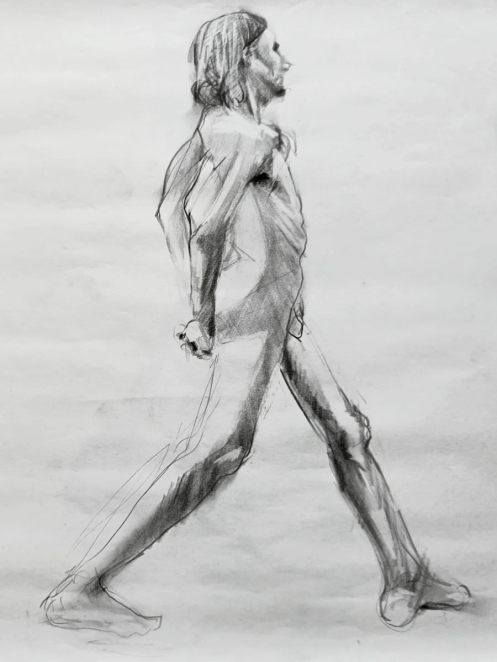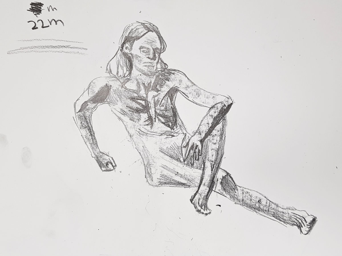 It had been a very enjoyable session in which I’d felt lots of positivity round the room. At the end, artists set out drawings on the floor for each other to see. Strong works, I thought, reflecting talent, enthusiasm, and the will to constantly explore and improve. This will probably be my last session with Adrian in 2022… so bring on 2023! 🙂