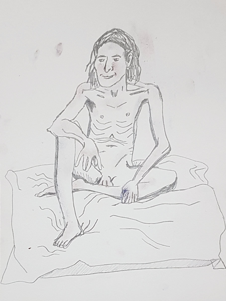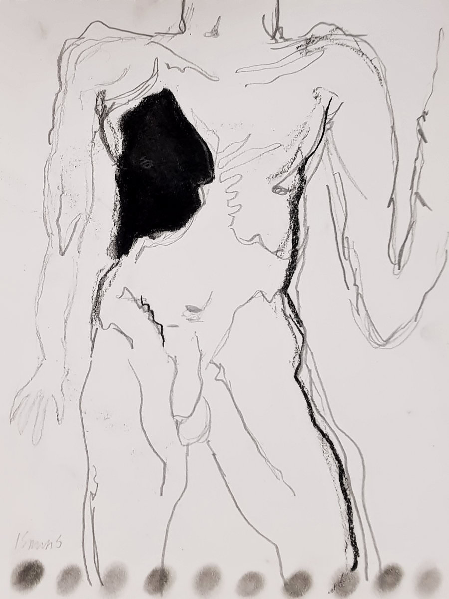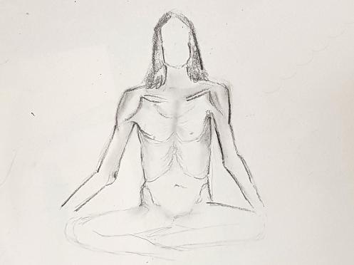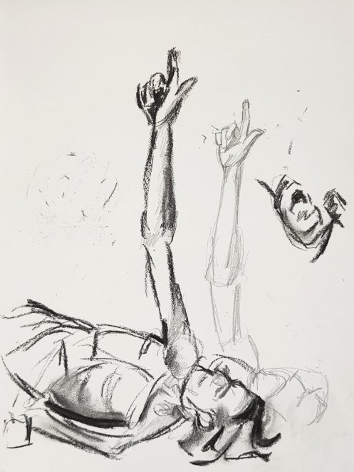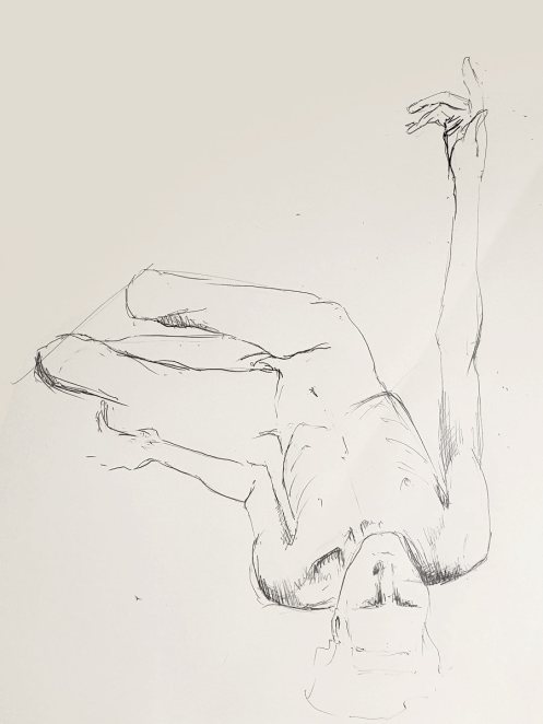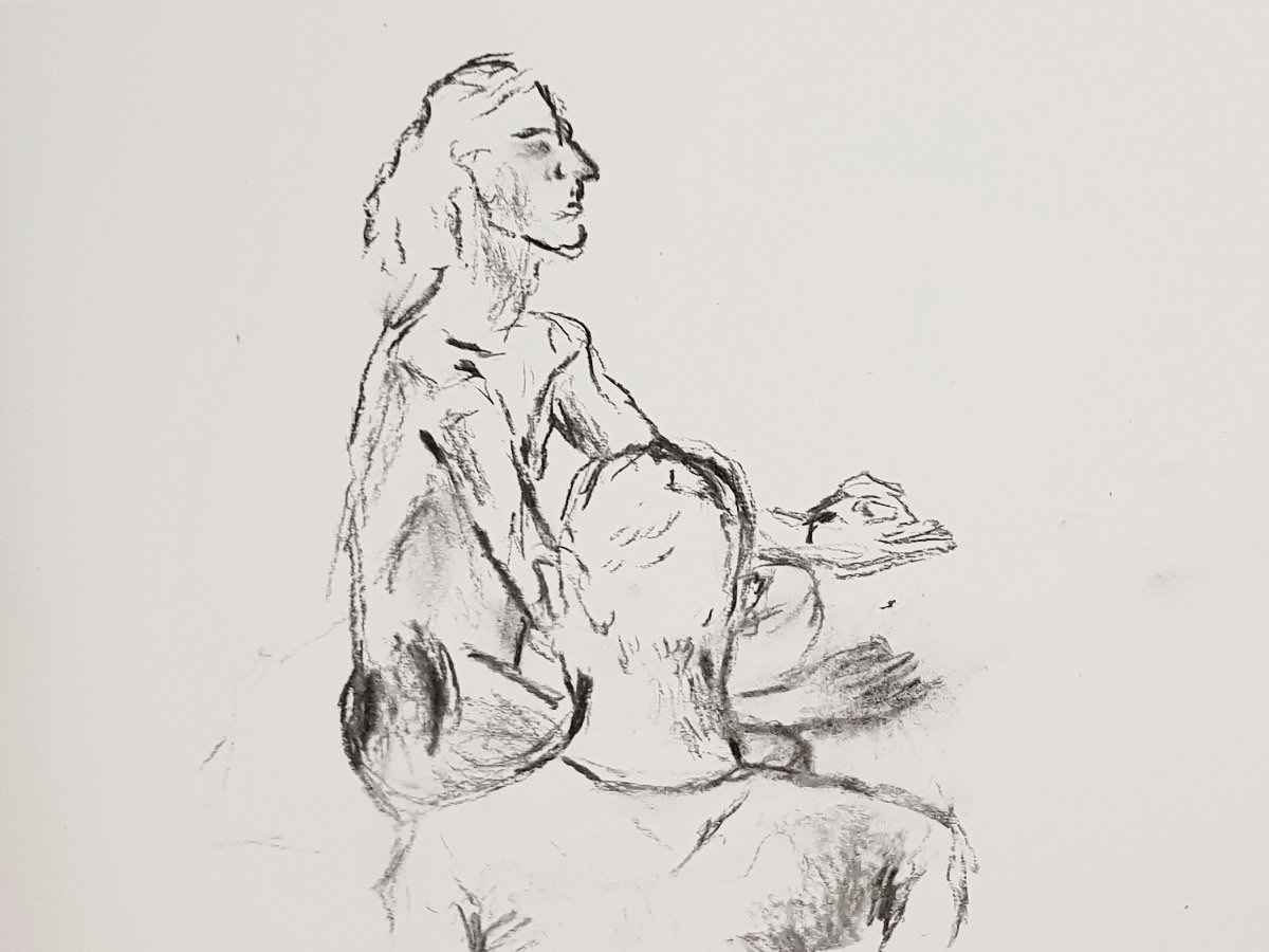 A quick half-time glance at artworks created thus far revealed what I presumed would be the case: my proximity to the artists in such an intimate space meant very few had captured my full head-to-toe figure, especially when standing. This needed rectifying, so after the interval I decided to stick with only compact seated poses.