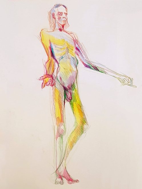 What a great session for a talented group. It was another of those rarities in which I’d felt I was smiling all the way through. I would have loved a second evening with them but, alas, it wasn’t to be. And now Leytonstone Life Drawing needs a new home so anybody reading this with a venue in Leyton and a passion for art, get in touch! Send ideas to J_wolfmail[at]yahoo.com – Thank you. 🙂