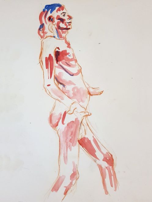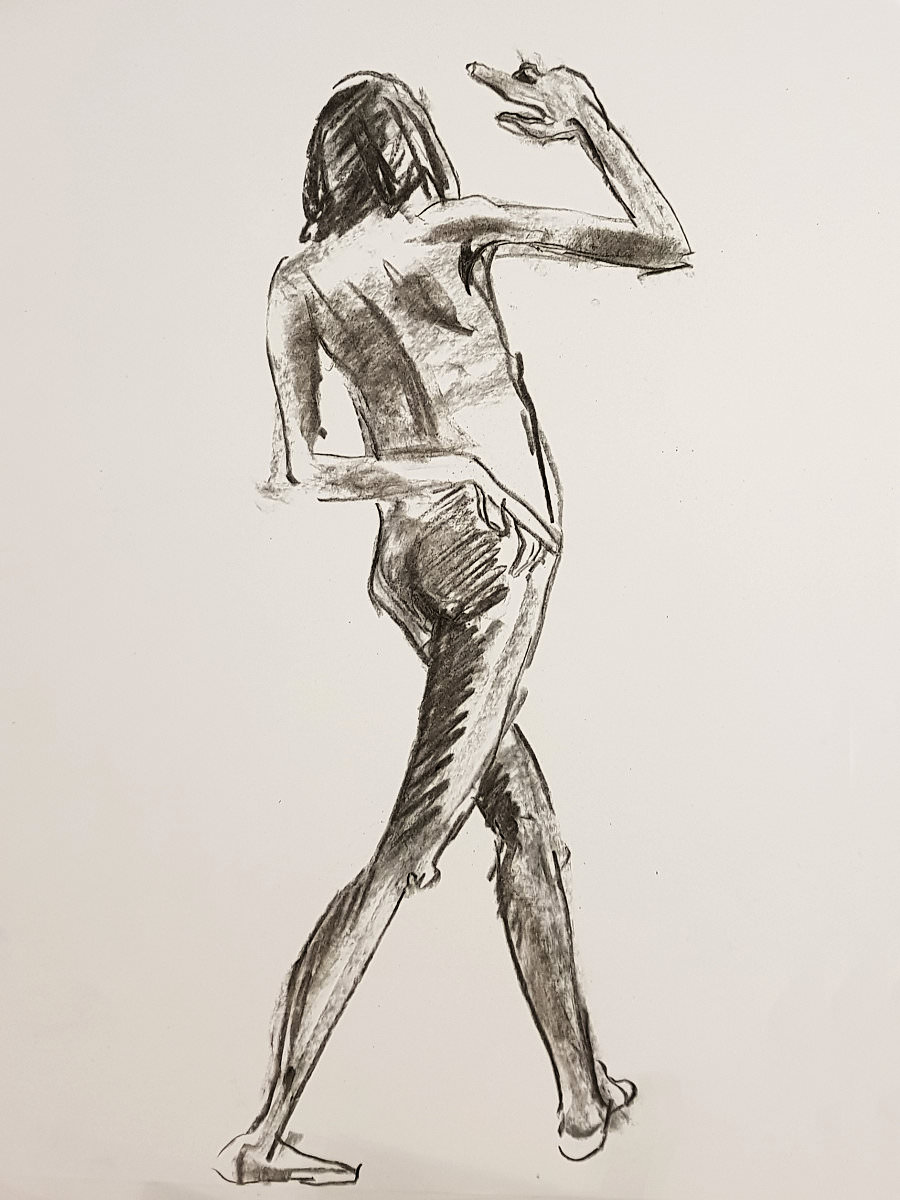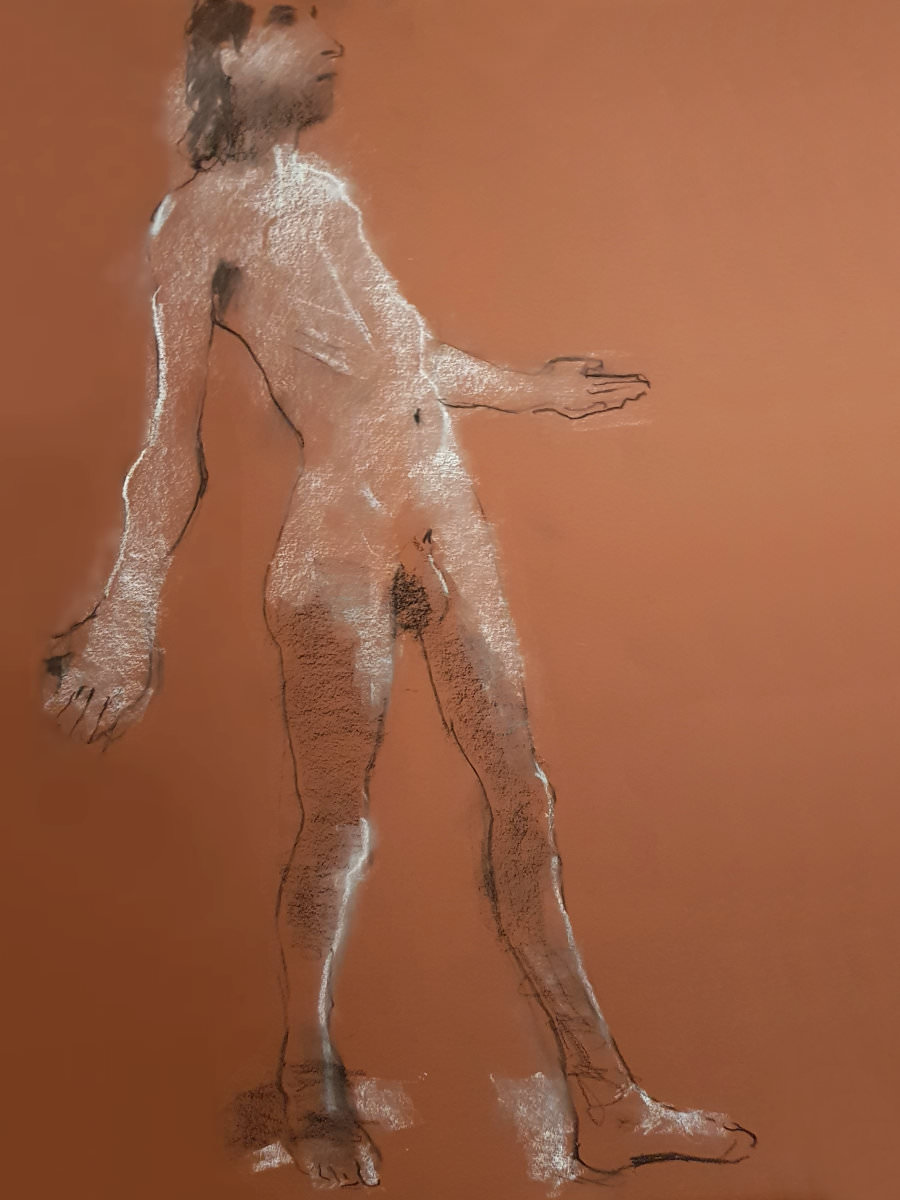 Julia of The Moon and Nude was already upstairs in the function room preparing for what would be her first session of 2023. It was nice to have time for a natter. Even so, with no event marketing since before the festive season we waited more in hope than expectation for artists to arrive. Happily, cometh the hour we had a comfortable group. We began with poses of 1 minute, 2 minutes, 3 minutes, 4 minutes and 5 minutes.