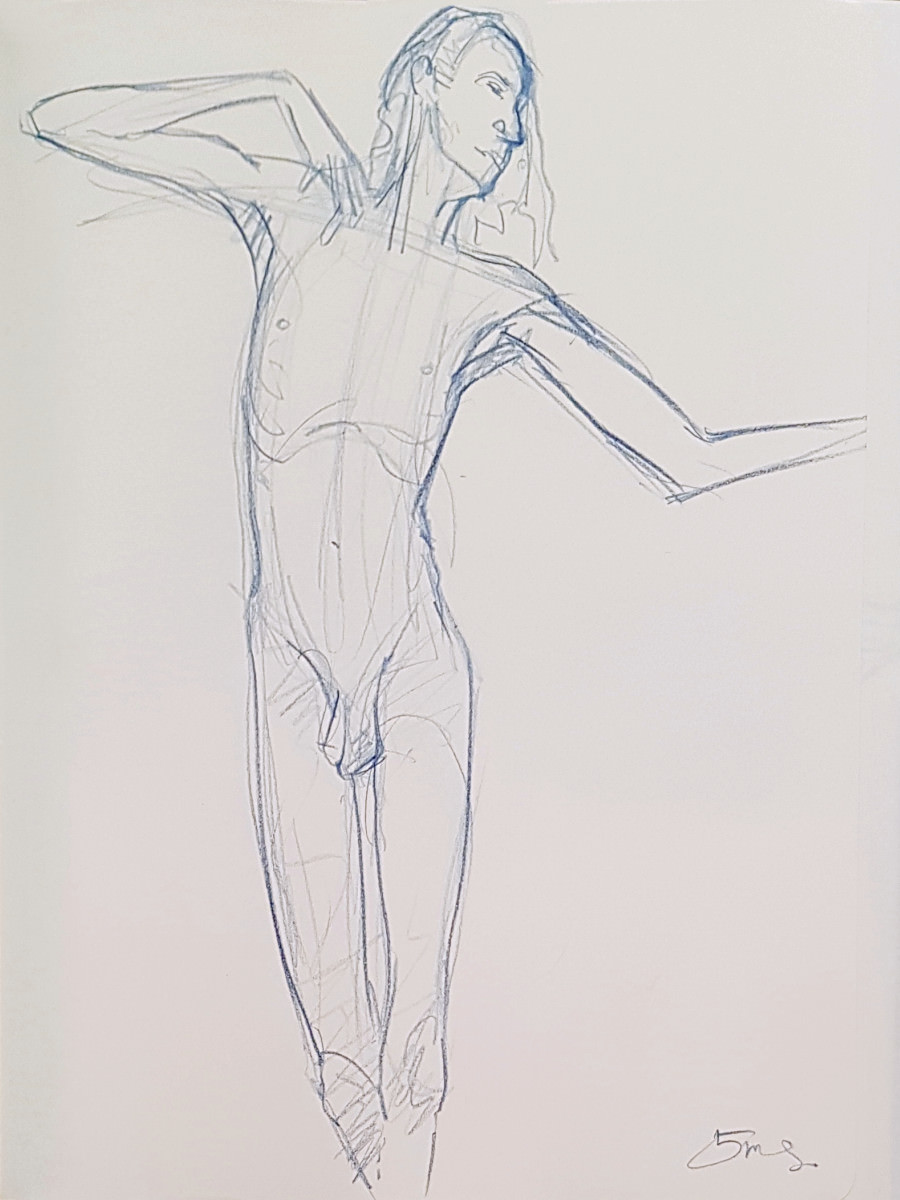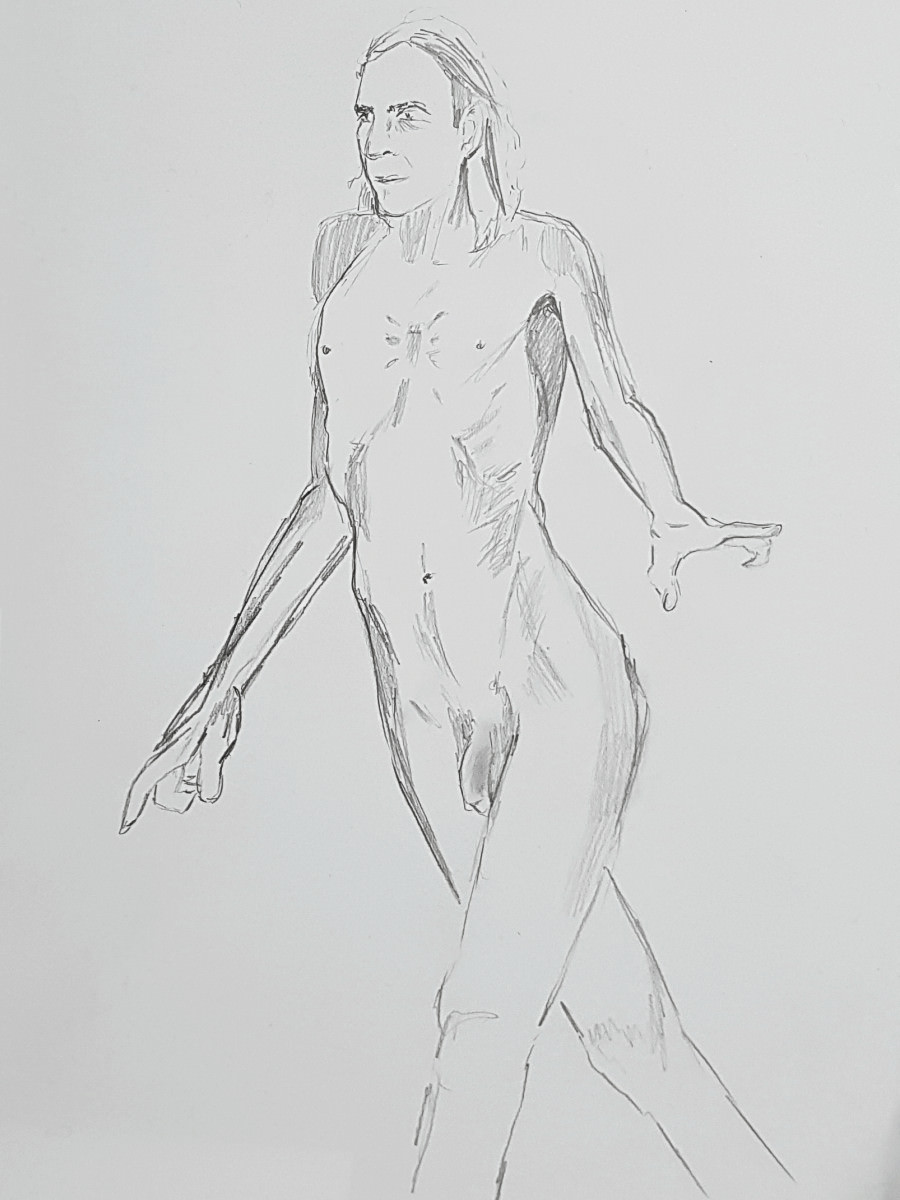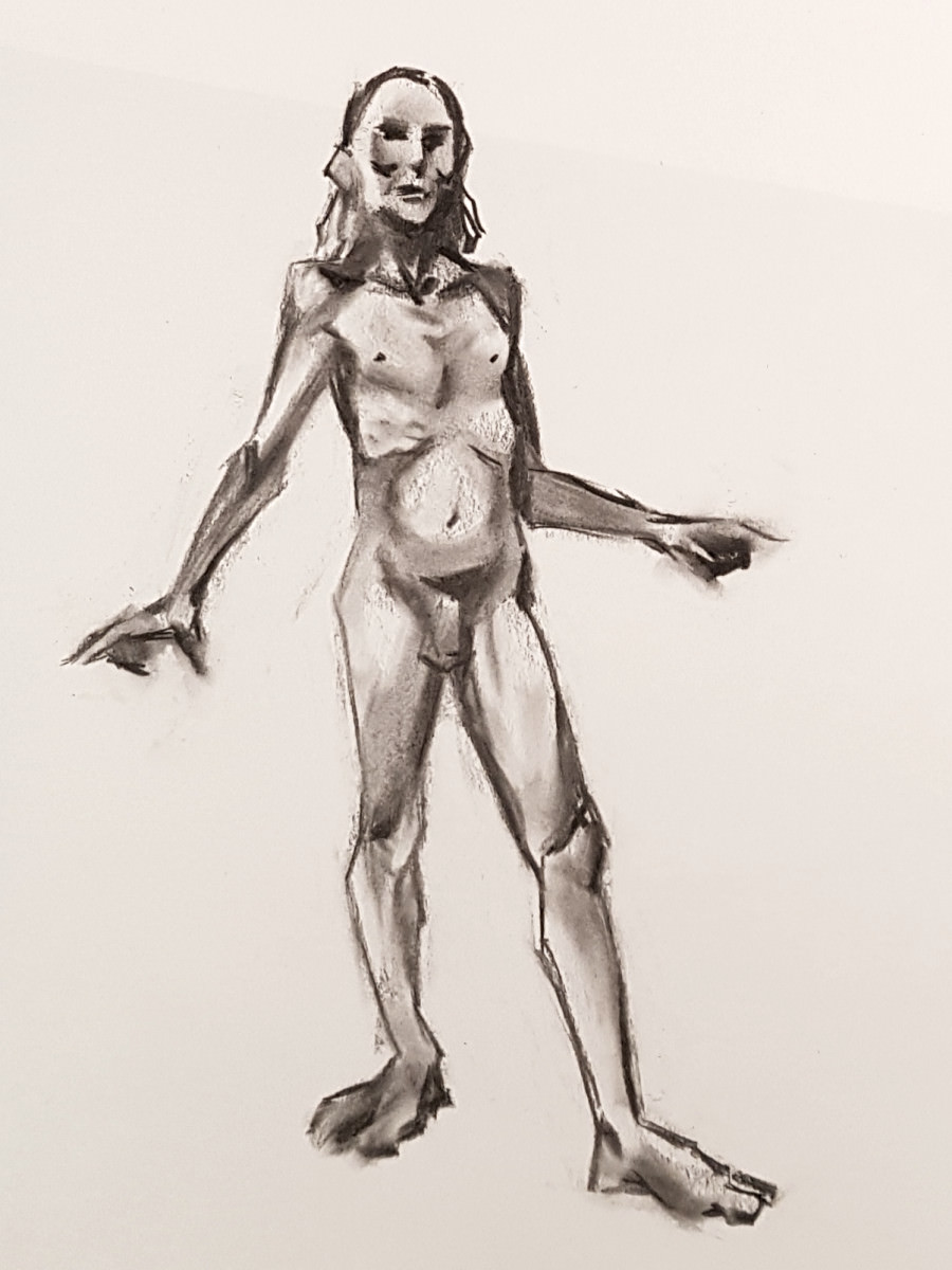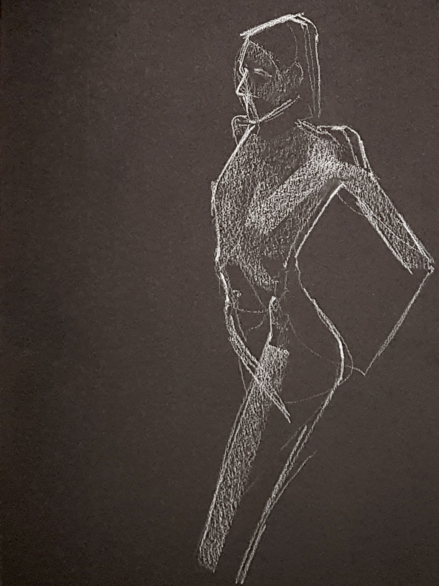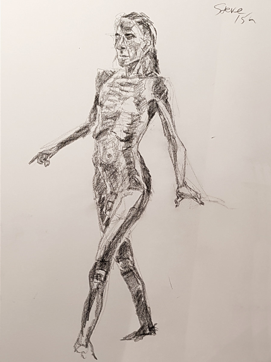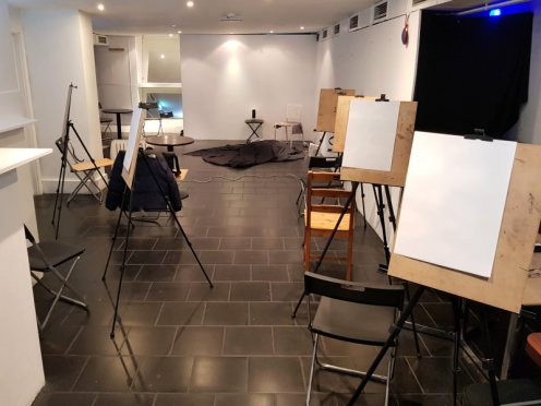It seems I was unlucky to encounter it between exhibitions, otherwise there would be art aplenty. The stark purity of its unadorned monochrome decor had an appeal of its own, however. Soon the walls were lined with artists – the event was a sell-out – and we got underway: a 5 minute pose to begin, like at The Star, but then 10 minutes.