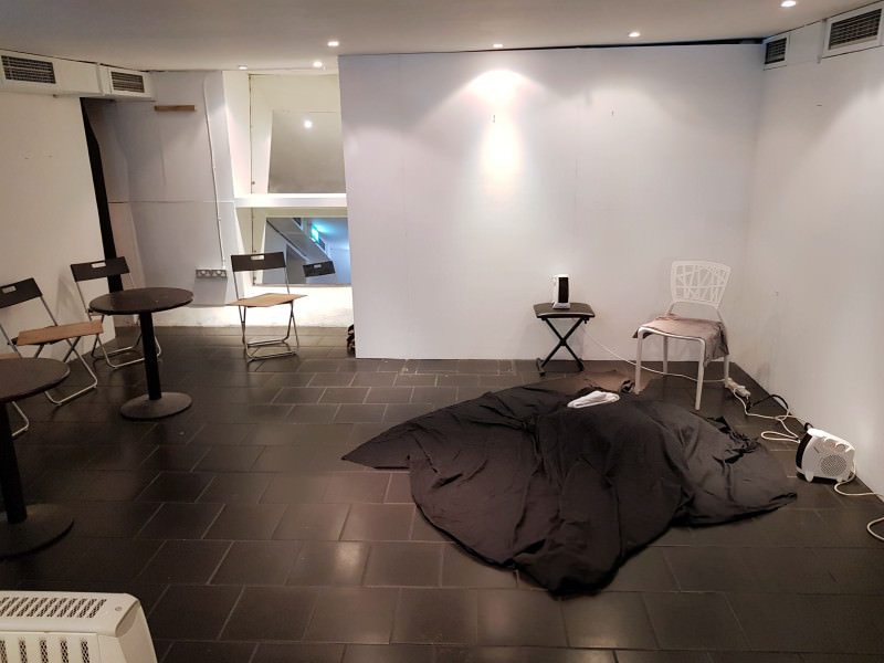 This was my first visit to the Hackney Den pub and its downstairs art space. The bar area felt chilled, comfortable and came close to luring me into drink, but I’d had a few too many at the weekend so stayed dry. I drifted down to what I imagined would be a murky spot-lit cellar, but instead found a bright clinically-clean tiled gallery space.
