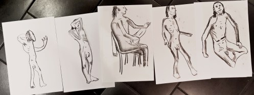 One tradition happily carried over from The Star is that of artists being encouraged to lay their drawings on the floor for mutual appreciation at the end of the evening. Such wonders to behold! From the strong to the stylish to the simple joy of mark-making. It was a pleasure to be here. Sorry I couldn’t stay longer for post-art socialising!