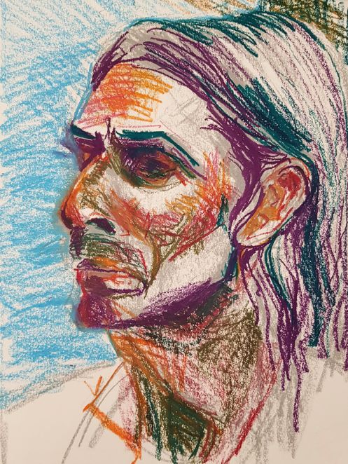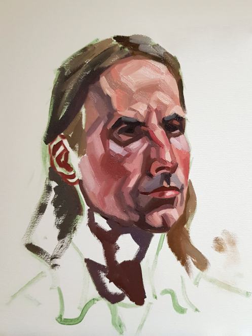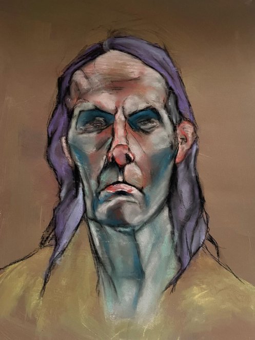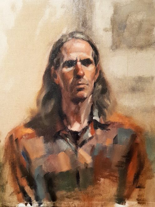The disciplines of life modelling and portrait modelling are profoundly different, and in more ways than the obvious. It doesn’t follow at all that just because a person has an aptitude and inclination for life modelling they will be equally willing and able to sit for portraitists. Nonetheless, perhaps inexplicably I’m ever more content to do it and was very happy to sit back while the brilliance of Leo and Esther shone for life.