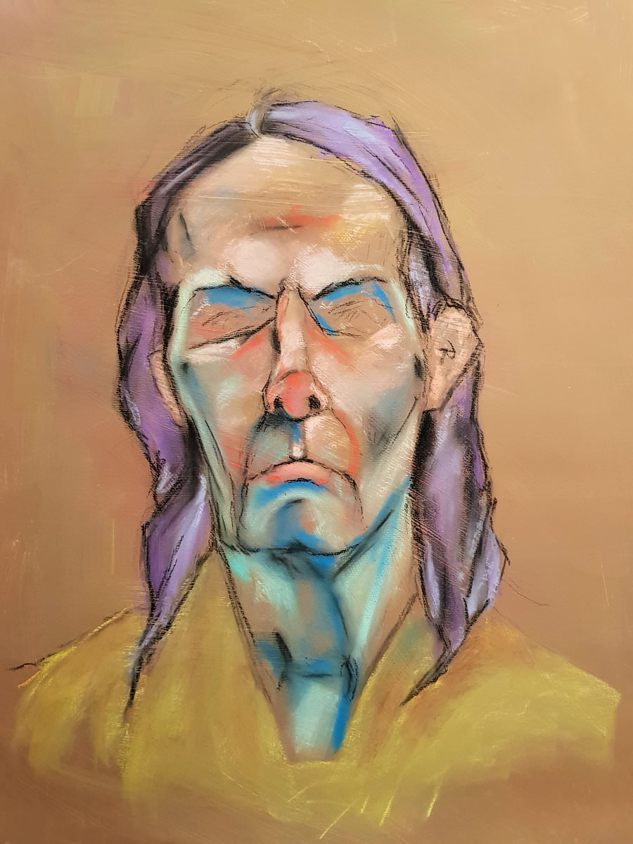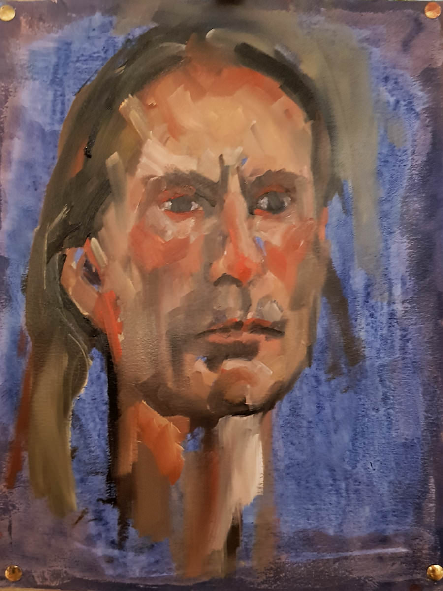 The disciplines of life modelling and portrait modelling are profoundly different, and in more ways than the obvious. It doesn’t follow at all that just because a person has an aptitude and inclination for life modelling they will be equally willing and able to sit for portraitists. Nonetheless, perhaps inexplicably I’m ever more content to do it and was very happy to sit back while the brilliance of Leo and Esther shone for life.