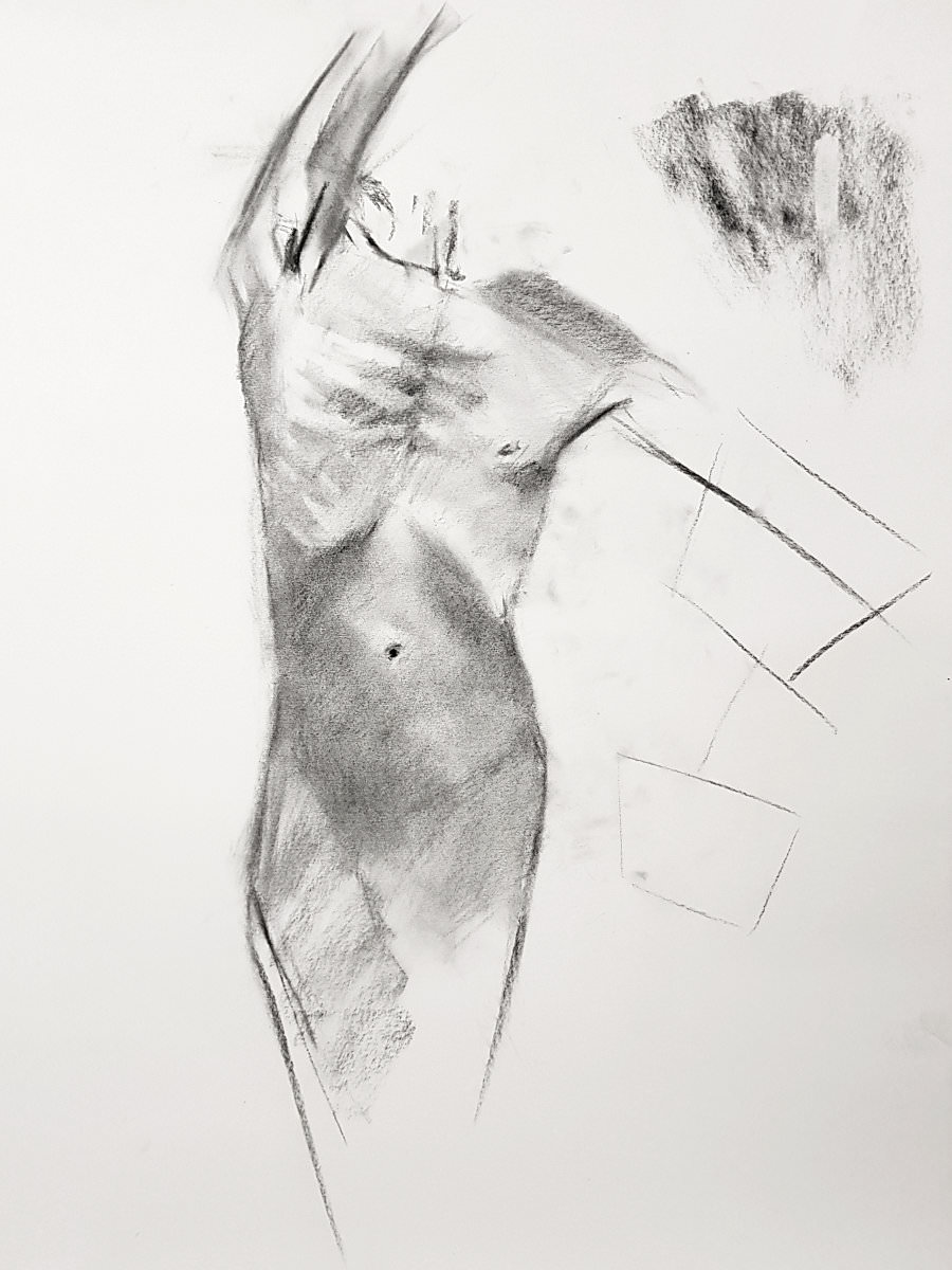 After these quick warm-ups I was asked to reprise my opening demo pose, now for a longer 5-minute demo. And then things got tricky: same pose requested yet again for an altogether more taxing 30 minutes. Poses concocted in haste with a 2-minute limit in mind don’t automatically translate to a static pain-free half-hour.