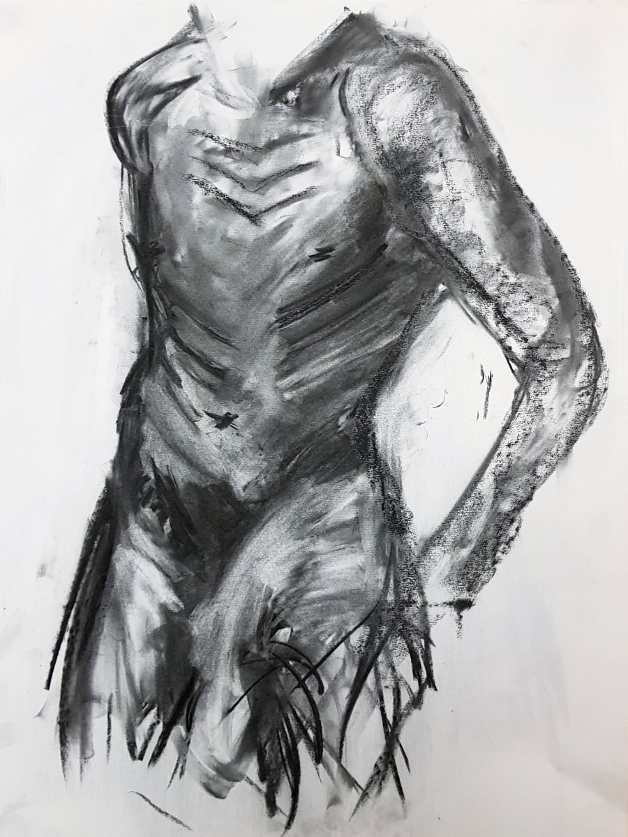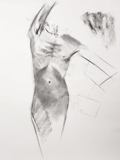 During the last pose Lawrence set his students their homework. He asked them each first to name an artwork or artist they found most inspiring, then to put that inspiration into practice before next week’s class. Meanwhile I stood nude, silent and scrutinised amidst all these notions, thinking about art that’s captivated me…