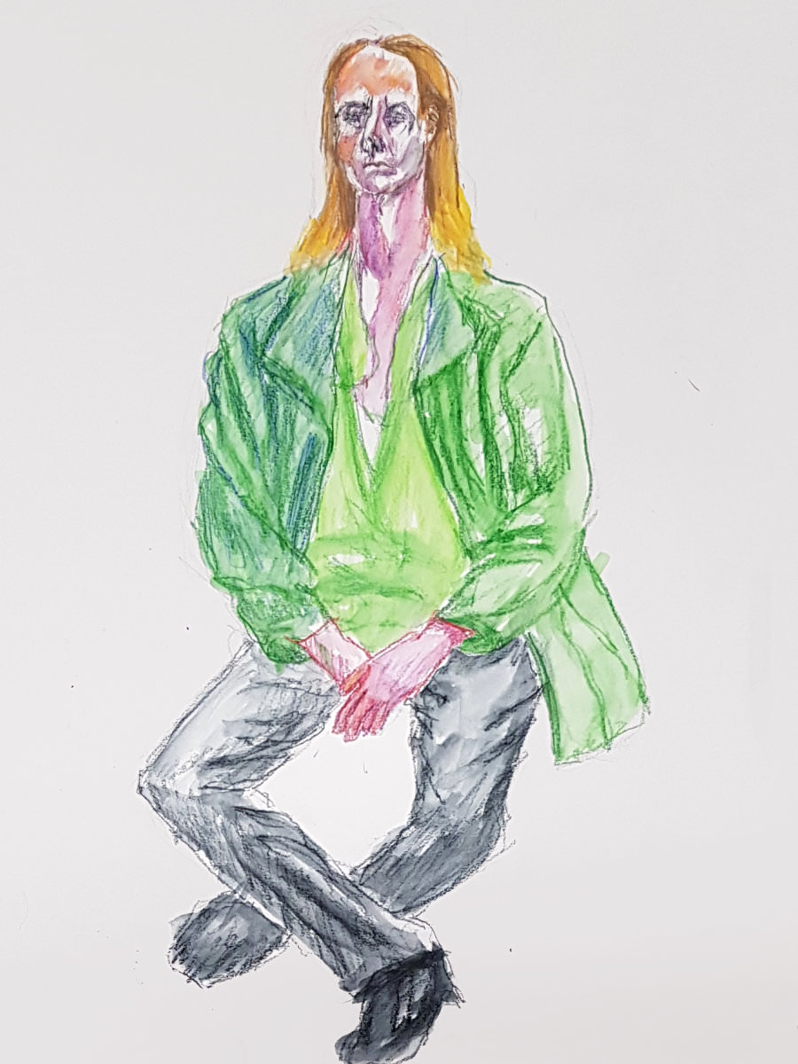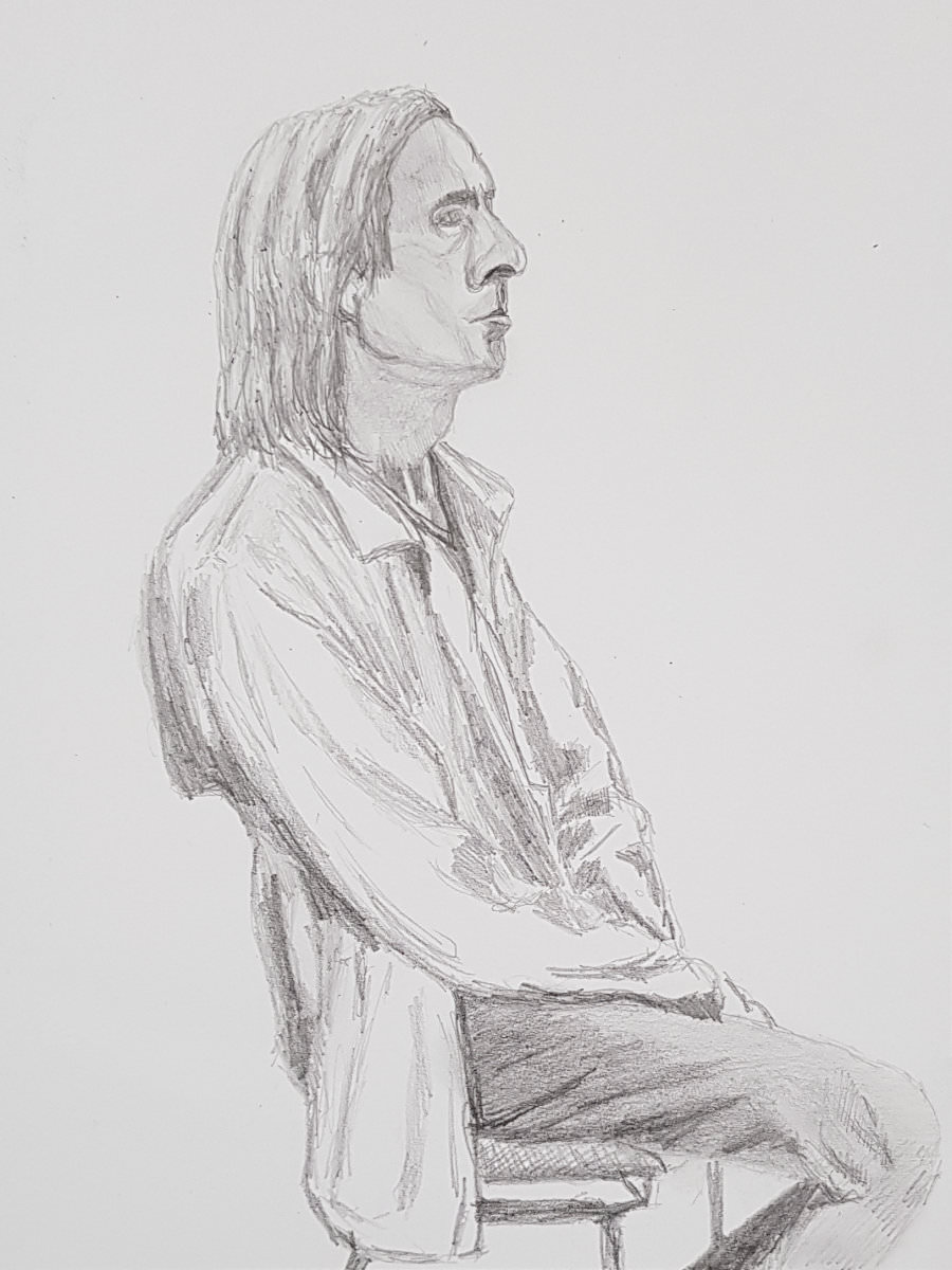 I was offered the chance to take breaks throughout but declined them all. A mistake I made, however, was to assume “portrait” meant only my face was being drawn. I did move my hands and feet occasionally, without realising some artists were attempting to capture my full figure. Sorry folks! And thank you all for your kindness.