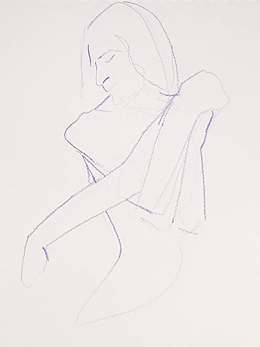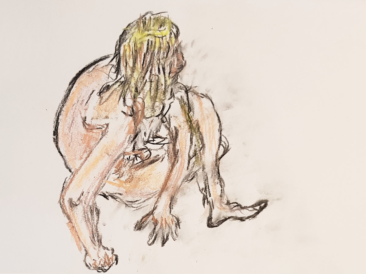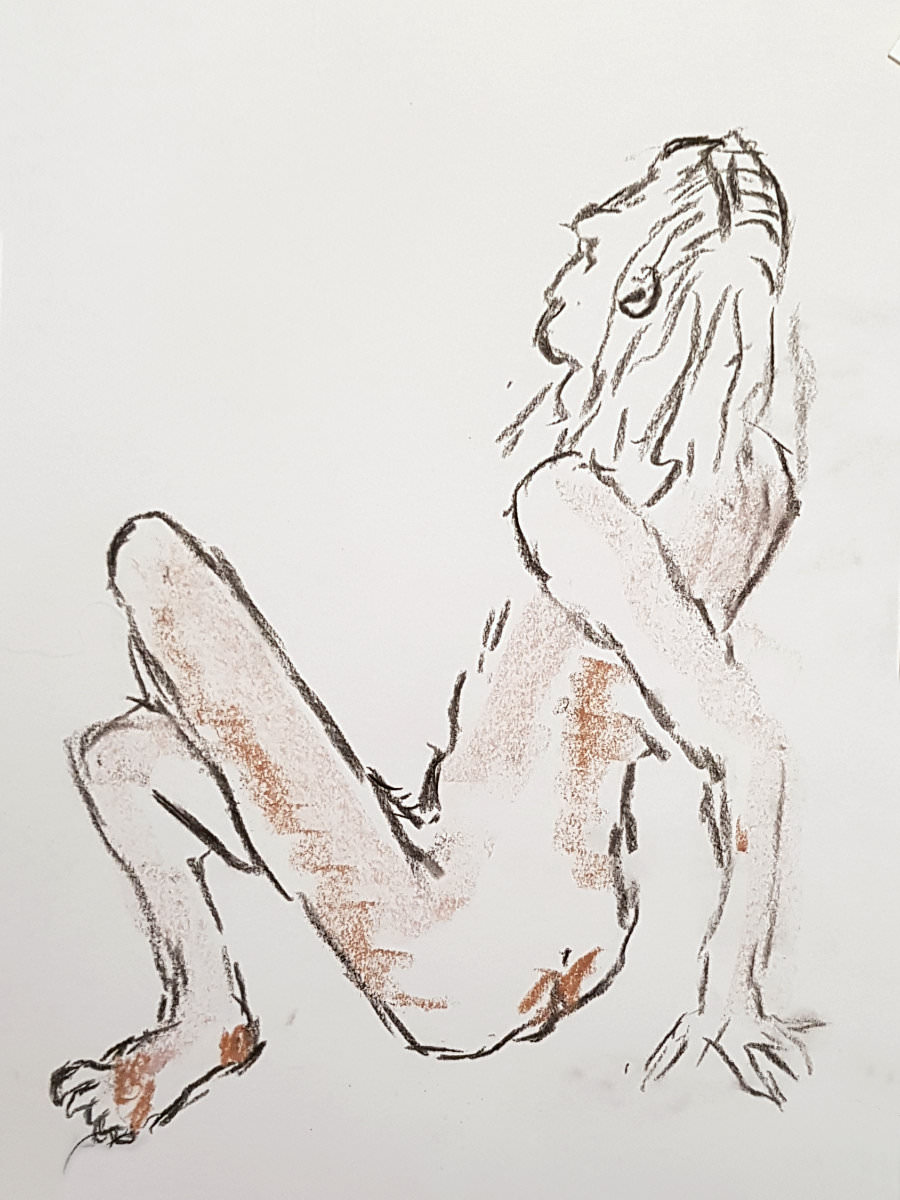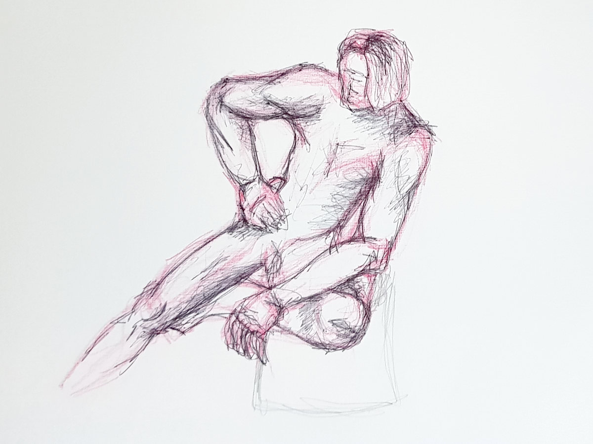 I ended the session sitting on a low stool, left knee crooked so my left foot was under my right thigh, whilst my right leg was out straight; right hand on right hip, left forearm resting across left thigh. Not the most comfortable, but I fancied it was nicely angular.