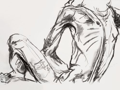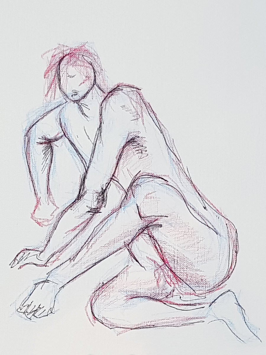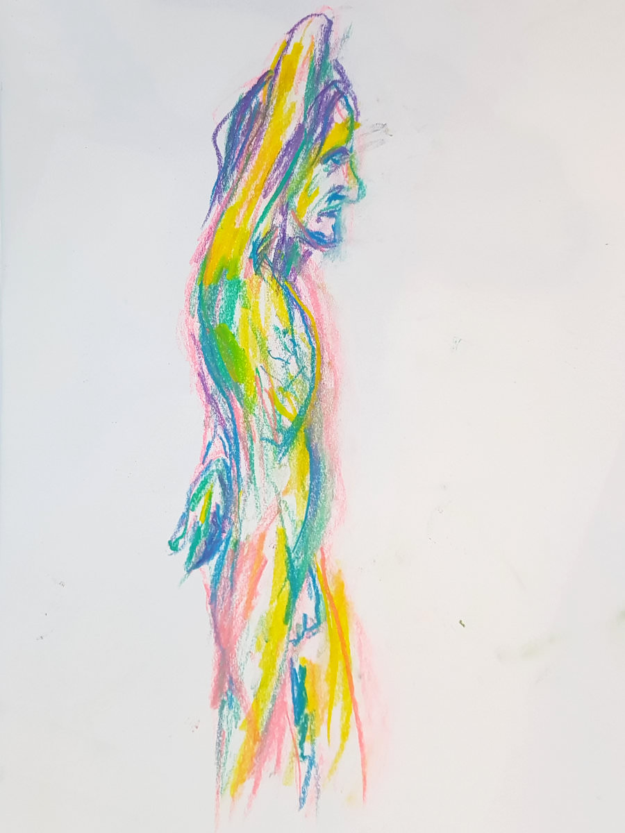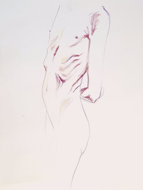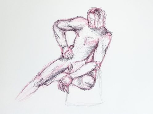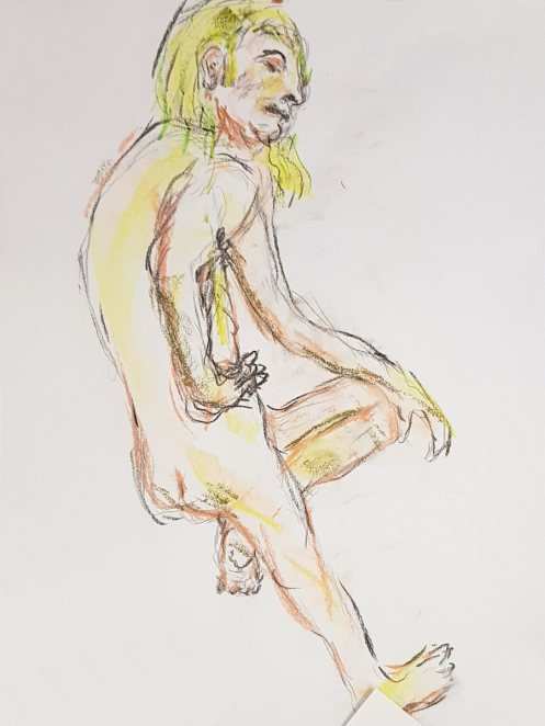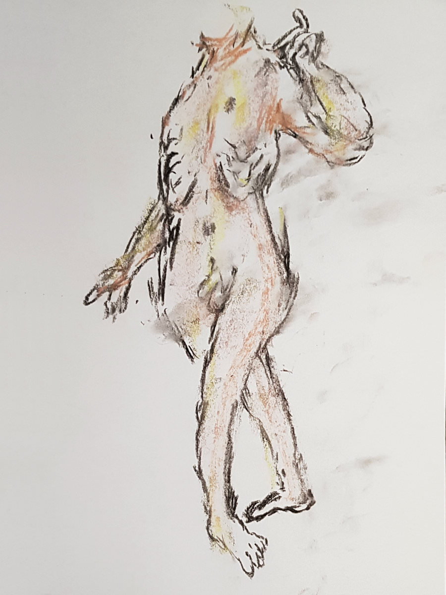 So, we rearranged the booking for August and all was well. We even got more artists than had turned up in recent weeks. The decor had altered but pose times in the first half were old favourites: 5 minutes, 4, 3, 2, three of 1 minute, three of 30 seconds.