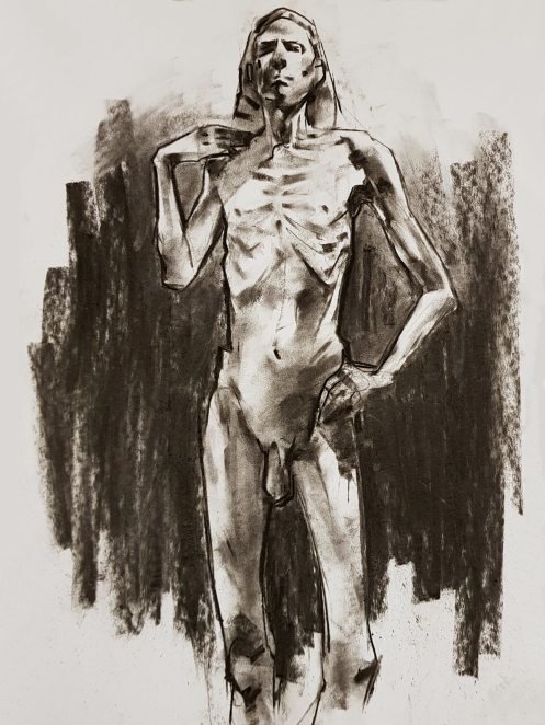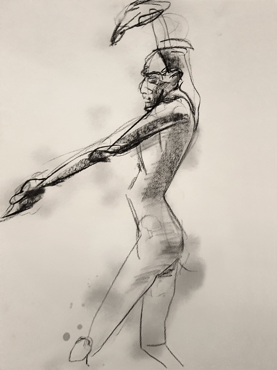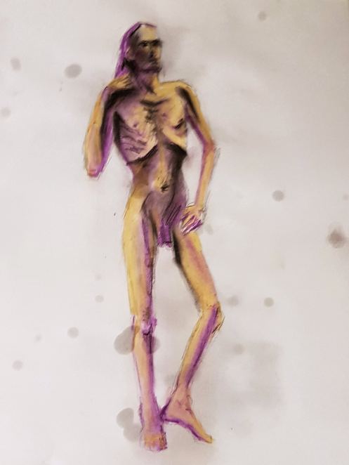 We ended with a 40-minute pose. Feeling in a good place, both within myself and the room, I offered to stand. Julia announced this to the artists, noting that offers to stand for the long pose are: “rarer than Willy Wonka’s golden tickets“. It was my pleasure to be their golden ticket; I felt connected and appreciated.