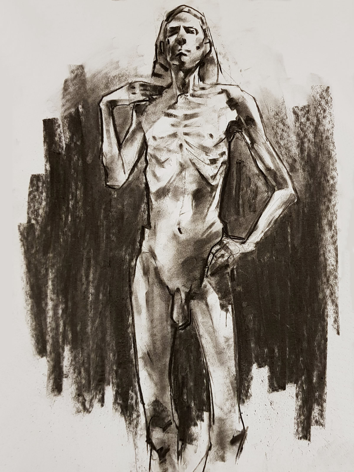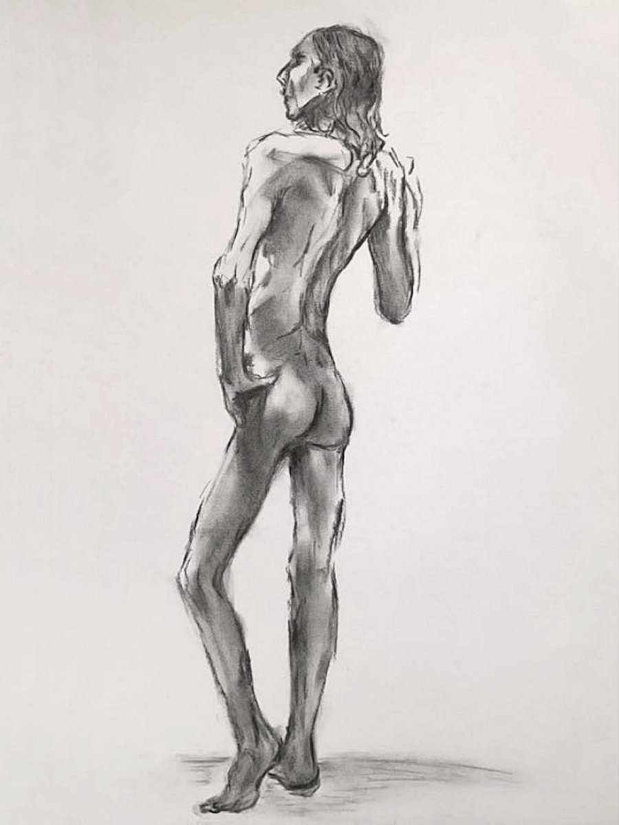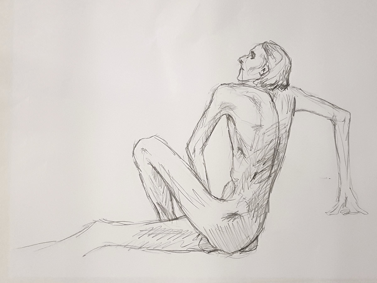 In my mind, poses up to 5 minutes in length are ‘quick’, whilst 10 minutes to half-hour is ‘medium’ and anything more is ‘long’ insofar as breaks may be needed. We moved to medium with a 10-minute pose, after which a 15-minute pose ran on to 20 minutes so the final pose before our half-time interval was shortened from 20 to 15.