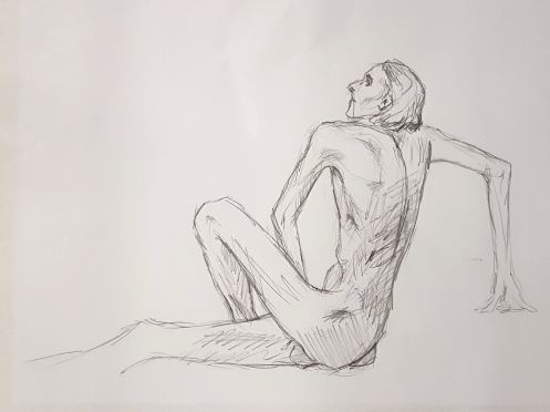 As ever, organiser Julia was attentive in asking me whether the room was sufficiently warm and checking that I wasn’t just playing the old soldier in saying ‘yes’. We began at 7pm with quickfire poses: 1 minute, 2 minutes, 3 minutes, 4 minutes, 5 minutes, all in the round; reorientating, repositioning, re-energising.