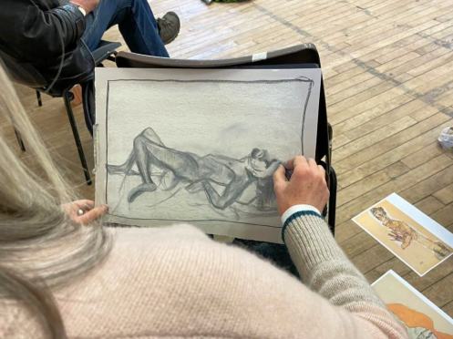 Evidently my Instagram account gave the right Egon Schiele vibes, so I was kindly invited to pose for end-of-month life drawing at The Birchwood Centre, Muswell Hill. The warmth of Cleo’s welcome more than made up for the centre’s under-performing radiators. I felt care and appreciation even before I started my opening ‘guru’ poses.