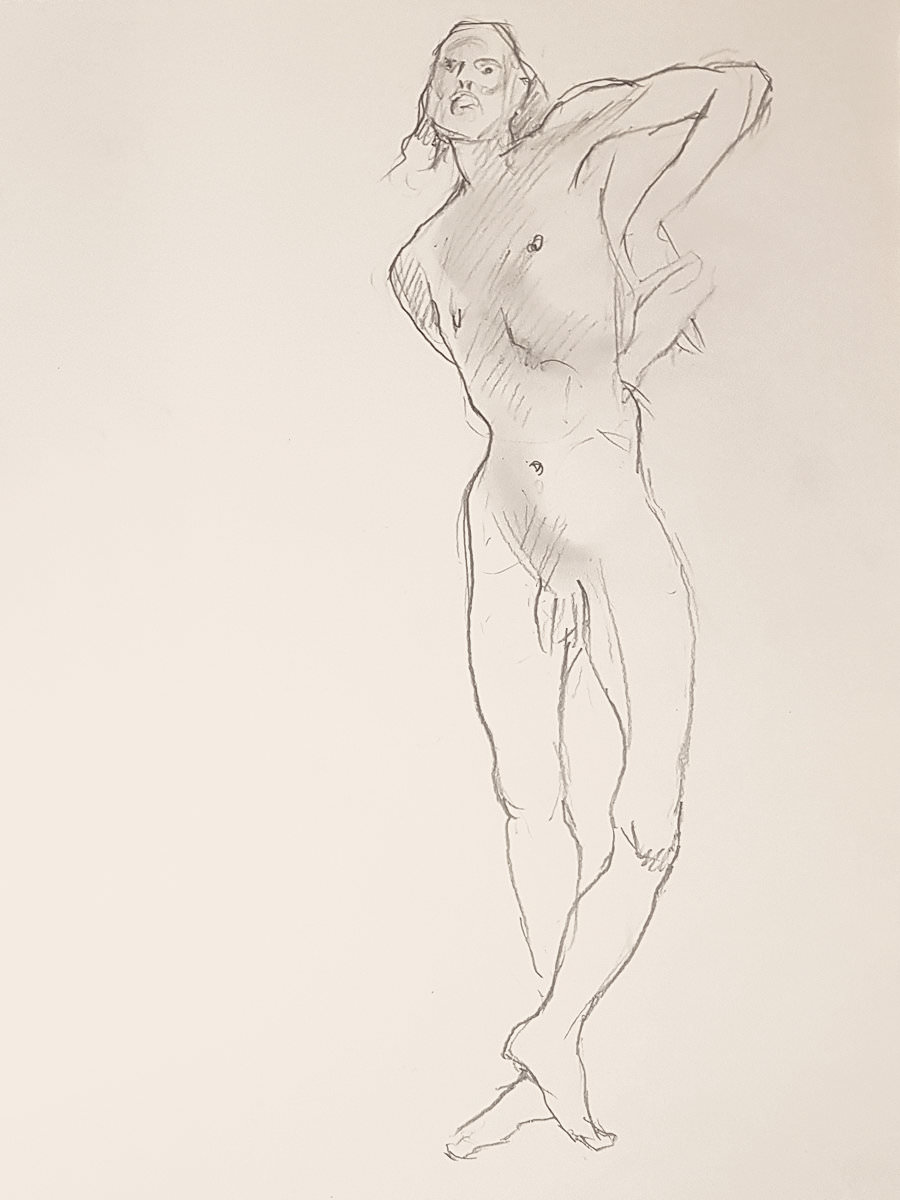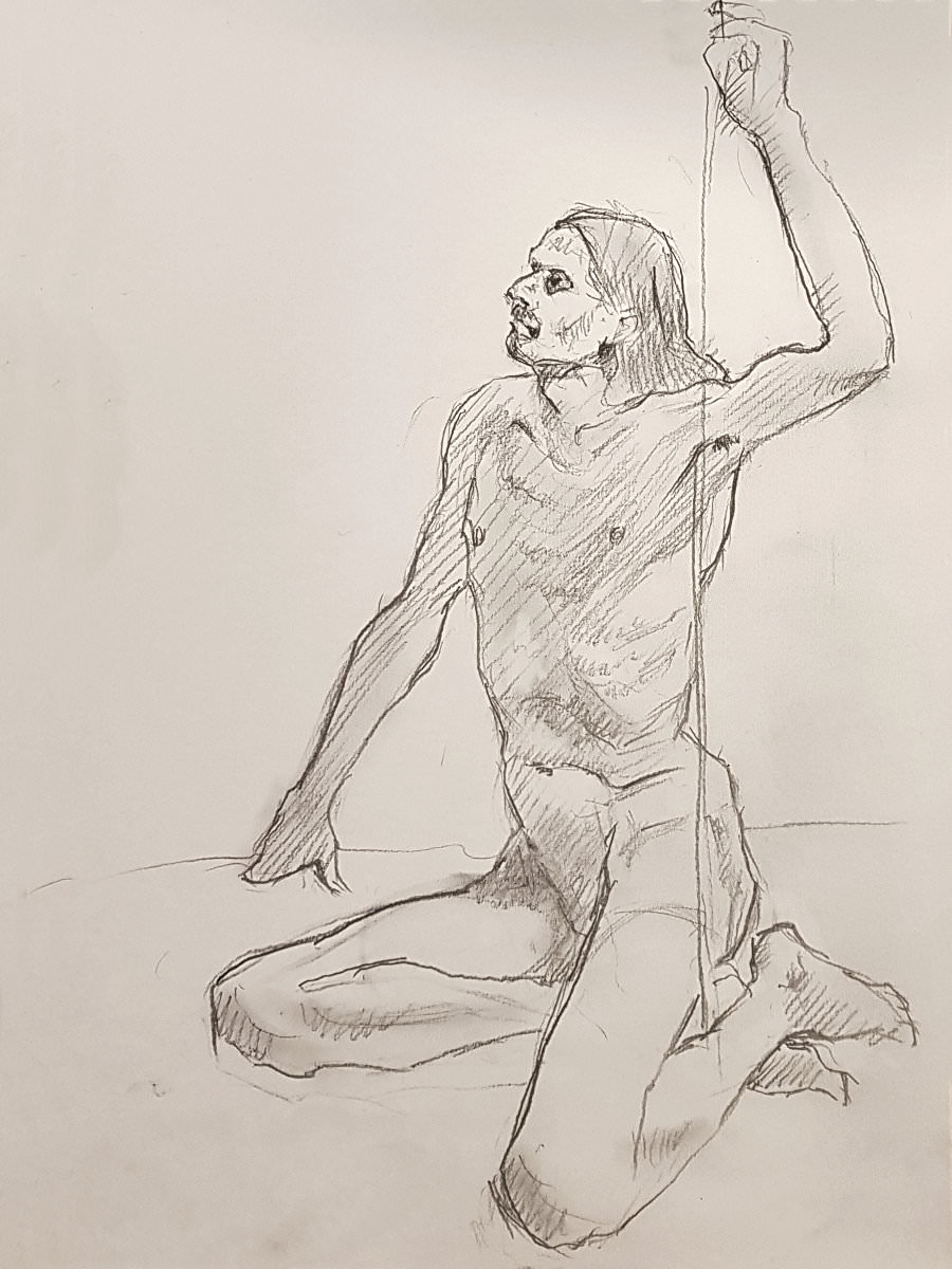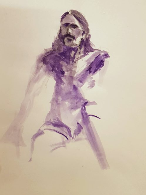 lifedrawing.art marked Movember with a ‘Month of Men‘ at Homerton library. Five Thursdays, five life drawing sessions, five male models; I was life model number five. Four weeks before my date, with due commitment I began cultivating a beard. Come the day itself, the beard dwindled to a moustache. My first ever moustache!