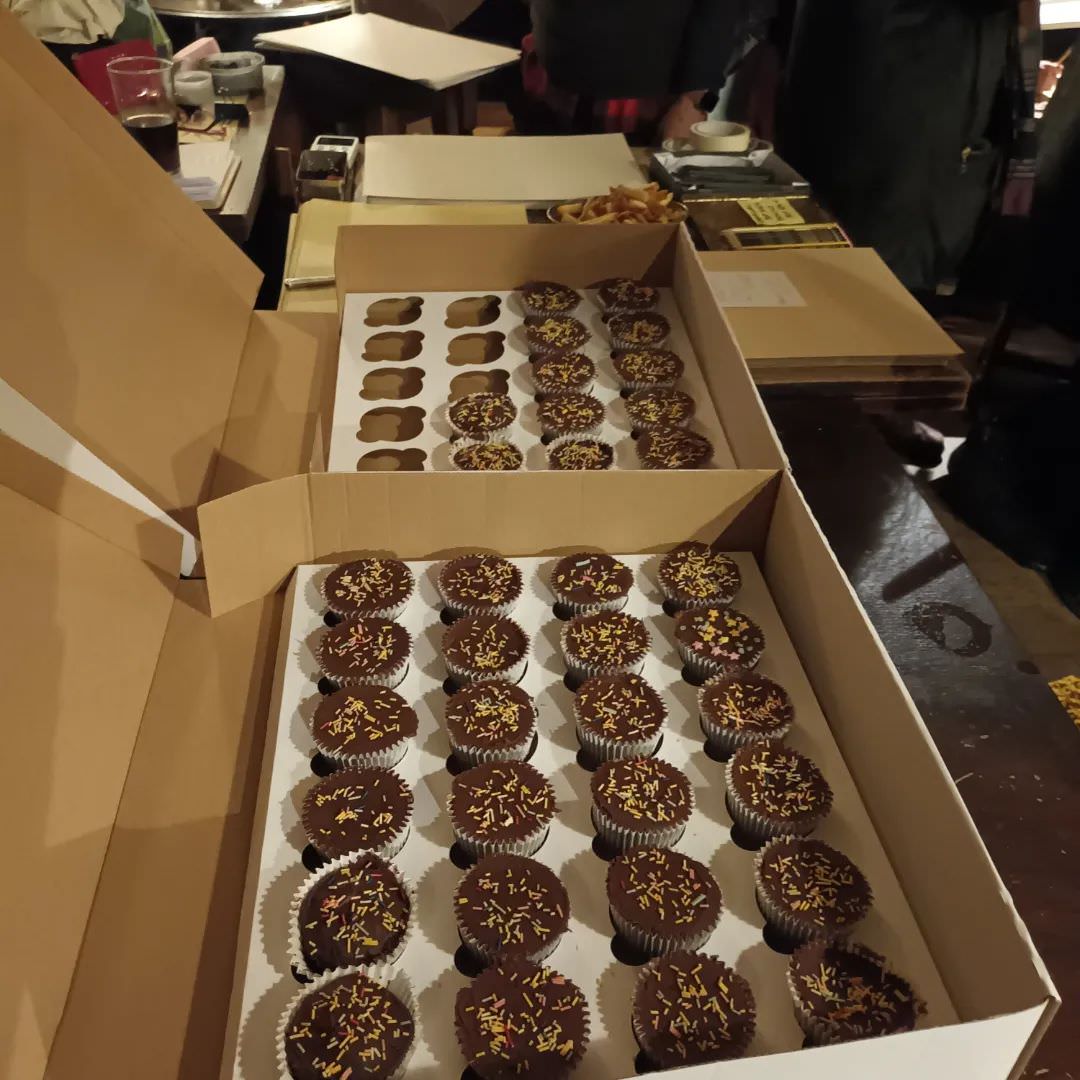 Cometh the break, cometh the birthday cupcakes! Cute chocolaty handfuls with thick icing and rainbow sprinkles, courtesy of Sugar Tea Room – divine! But we devoured them with such gusto that our white floor sheet quickly became a riot of crumbs.