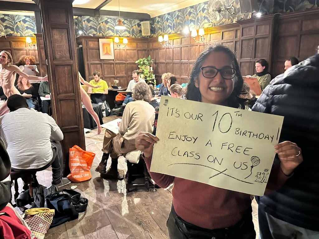 With some diary adjustment – thank you, Carl – we were indeed both available. We’d modelled together for their 4th birthday and 8th birthday and it never ceases to feel an honour to be invited. 💖 Happy 10th birthday, Tottenham Art Classes!! 💖