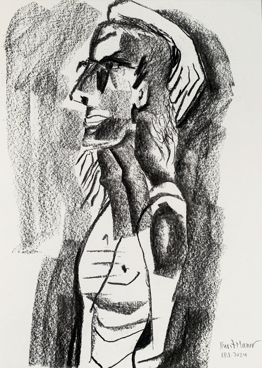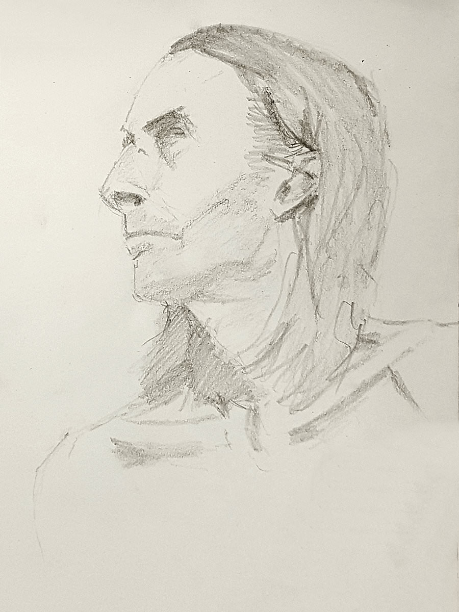 When a class is free, it’s natural to expect more people will attend than usual. What a glorious sight, though, to walk into a life room and find it buzzing with row after row of merry artists. I counted 35 before we started, but reckon the final total was nearer 50.