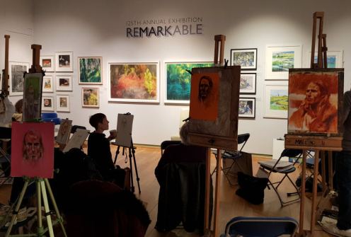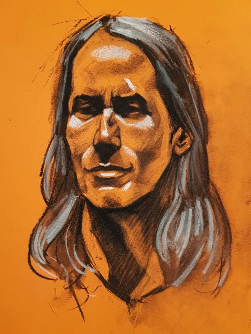 After the excitement of being invited to the short pose space at Mall Galleries on my last visit for Hesketh Hubbard Art Society, I was back to familiar territory for a more sedentary session with the portrait artists… amid remarkable vegetation in pastel.