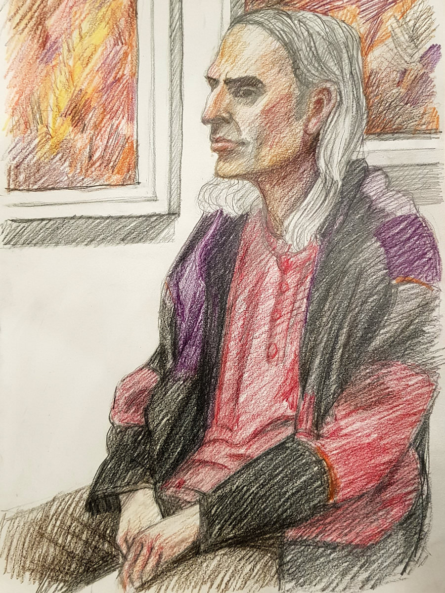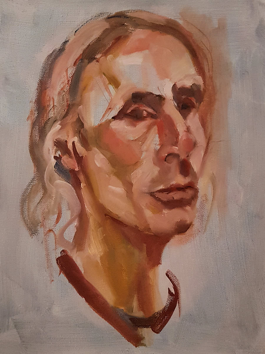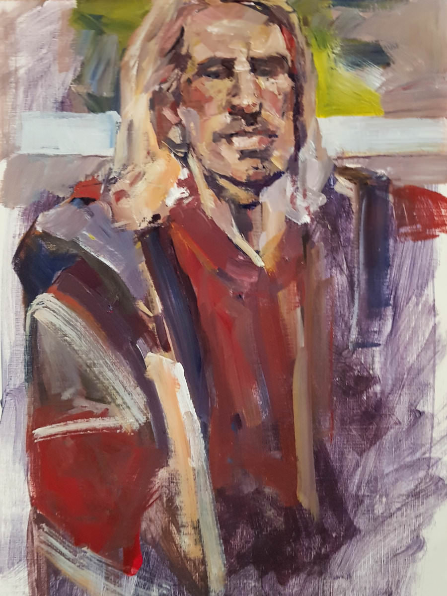 It remains rather mind-bending to be physically immobile for an hour with nothing but one’s own thoughts for sustenance while artists scrutinise each follicle and molecule, every pore and flaw. But I get tea and biscuits at half-time. And one more hour, ’til…