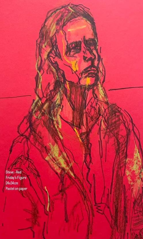 As I settled down for the first of my two unbroken hours seated and motionless in the hot seat I removed my glasses and directed my hazy myopic gaze at the distant pink blur of Esther on shorts. Sixty minutes passed; four poses for Esther, one for me.