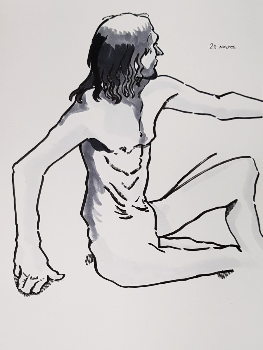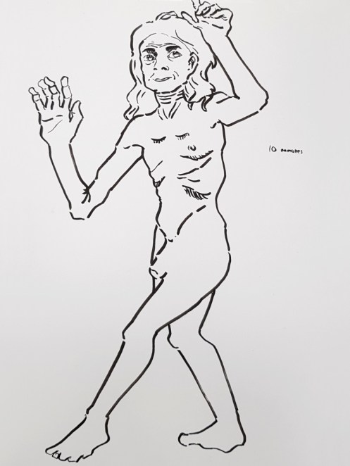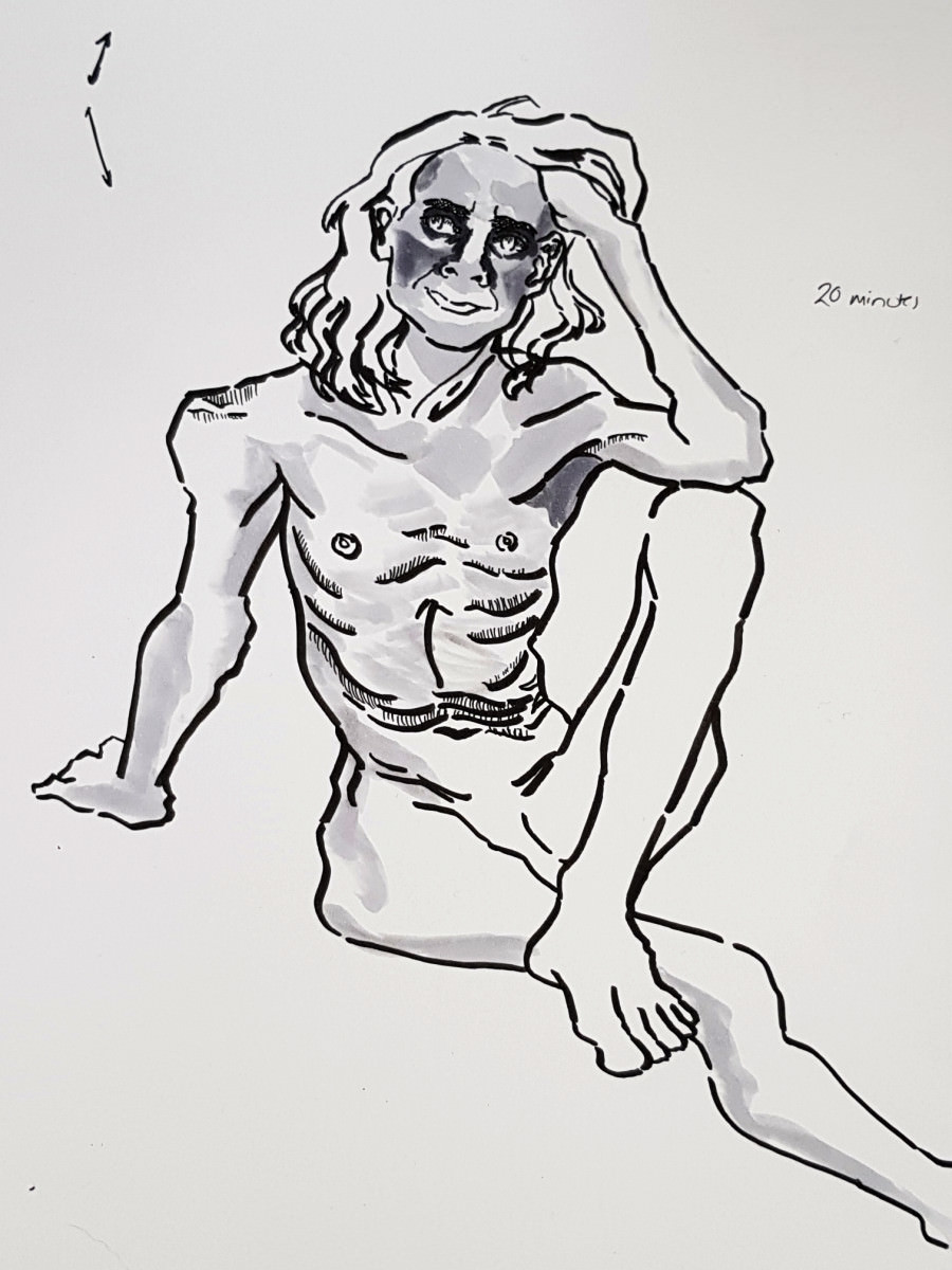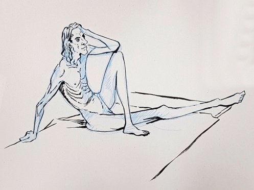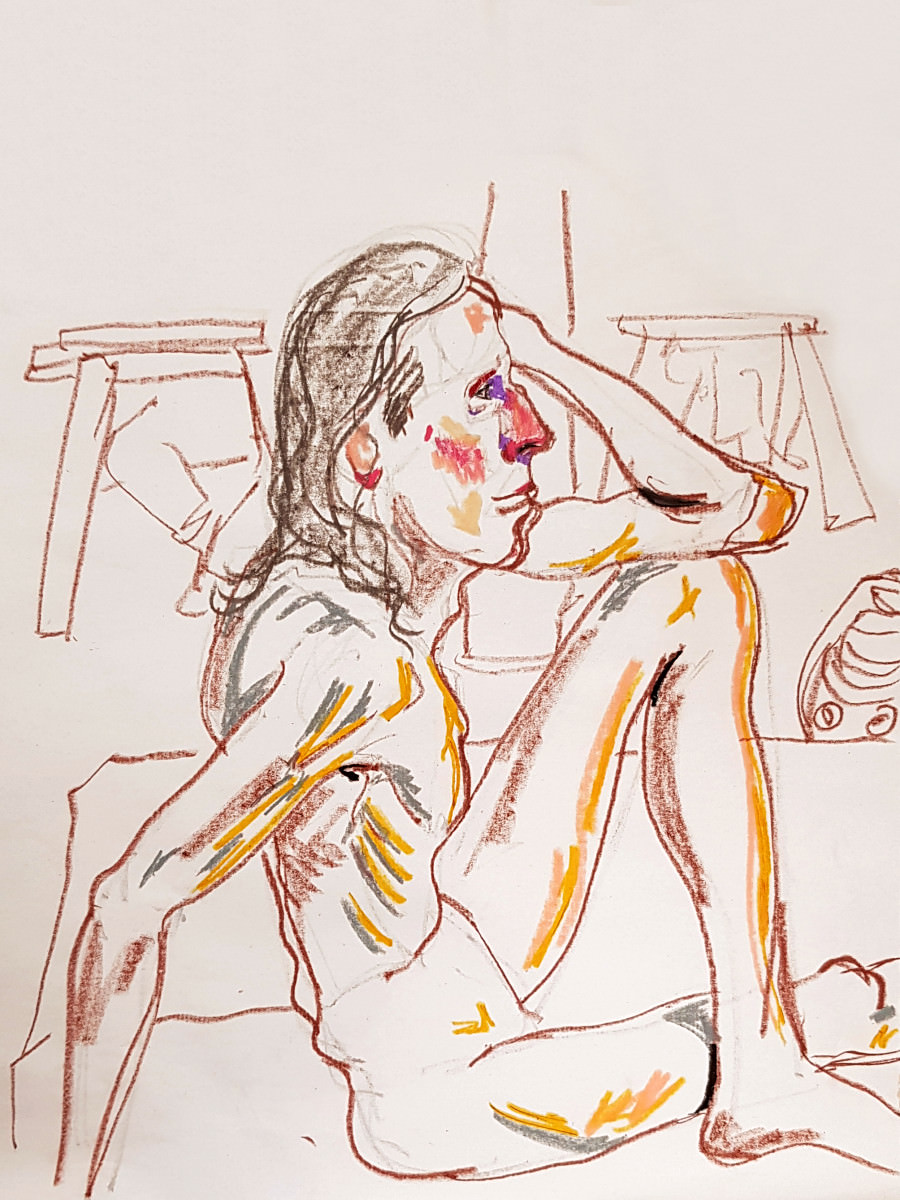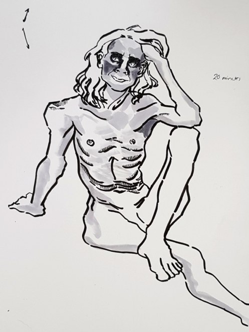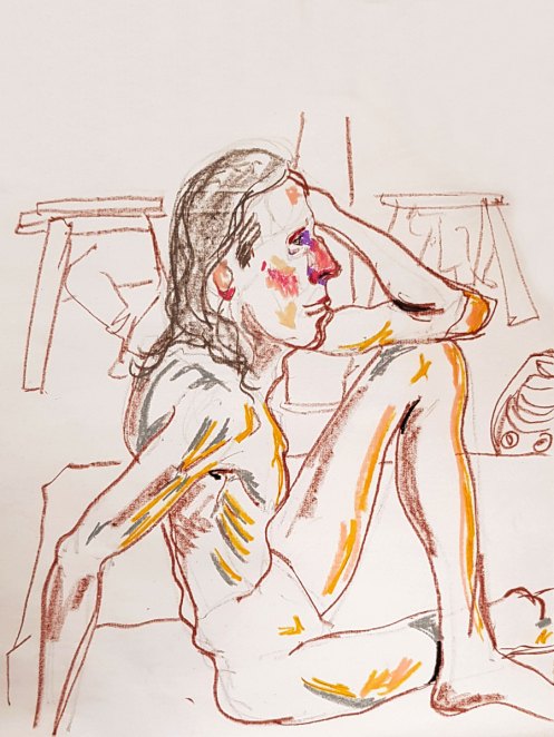 This remains the only group I know that offers free, freshly cooked hot food for model and artists alike at the interval. After a delicious bowl of dhal we resumed our art with five more 1-minute poses – to get everybody re-energised – before finishing with one pose of 15 minutes and one of 20 minutes.