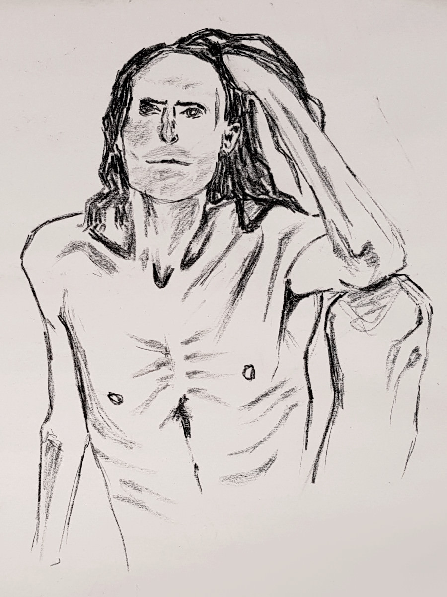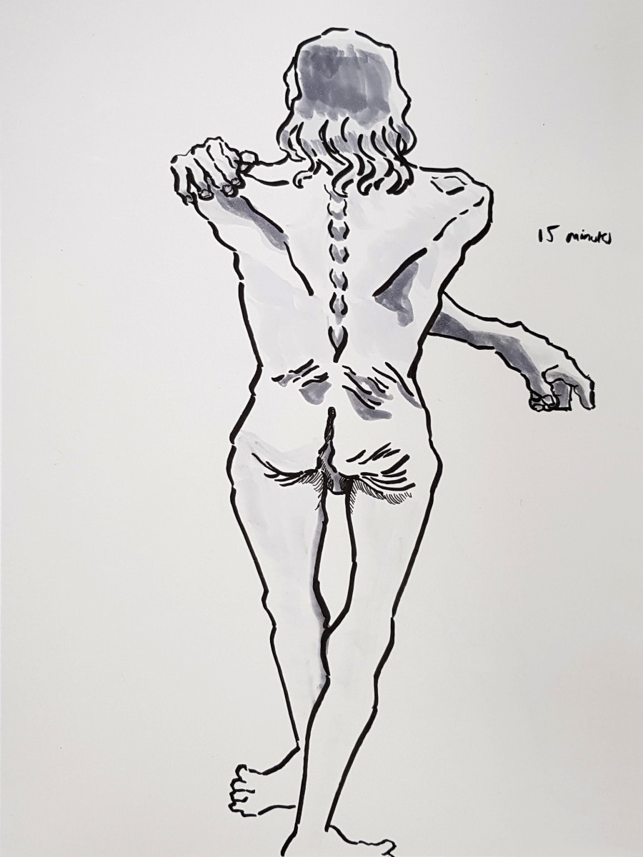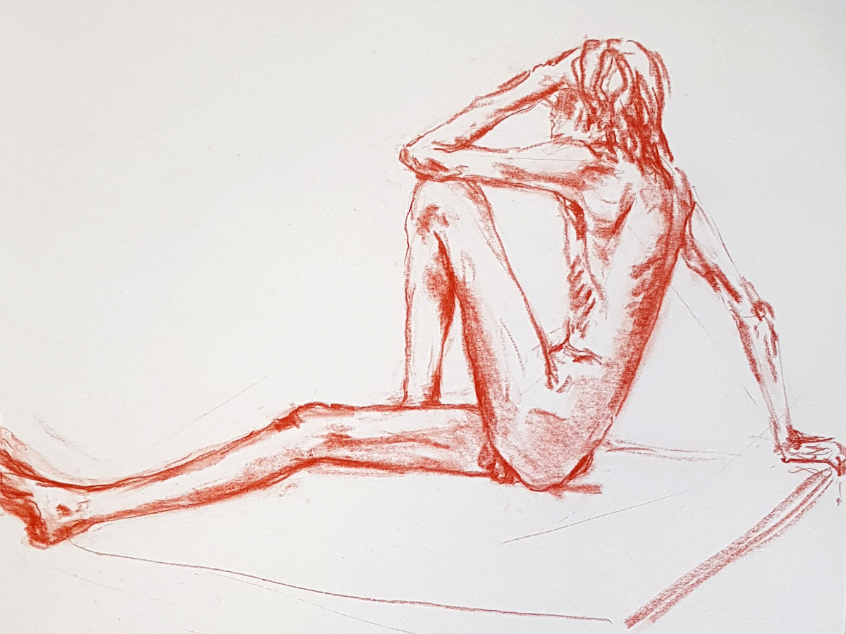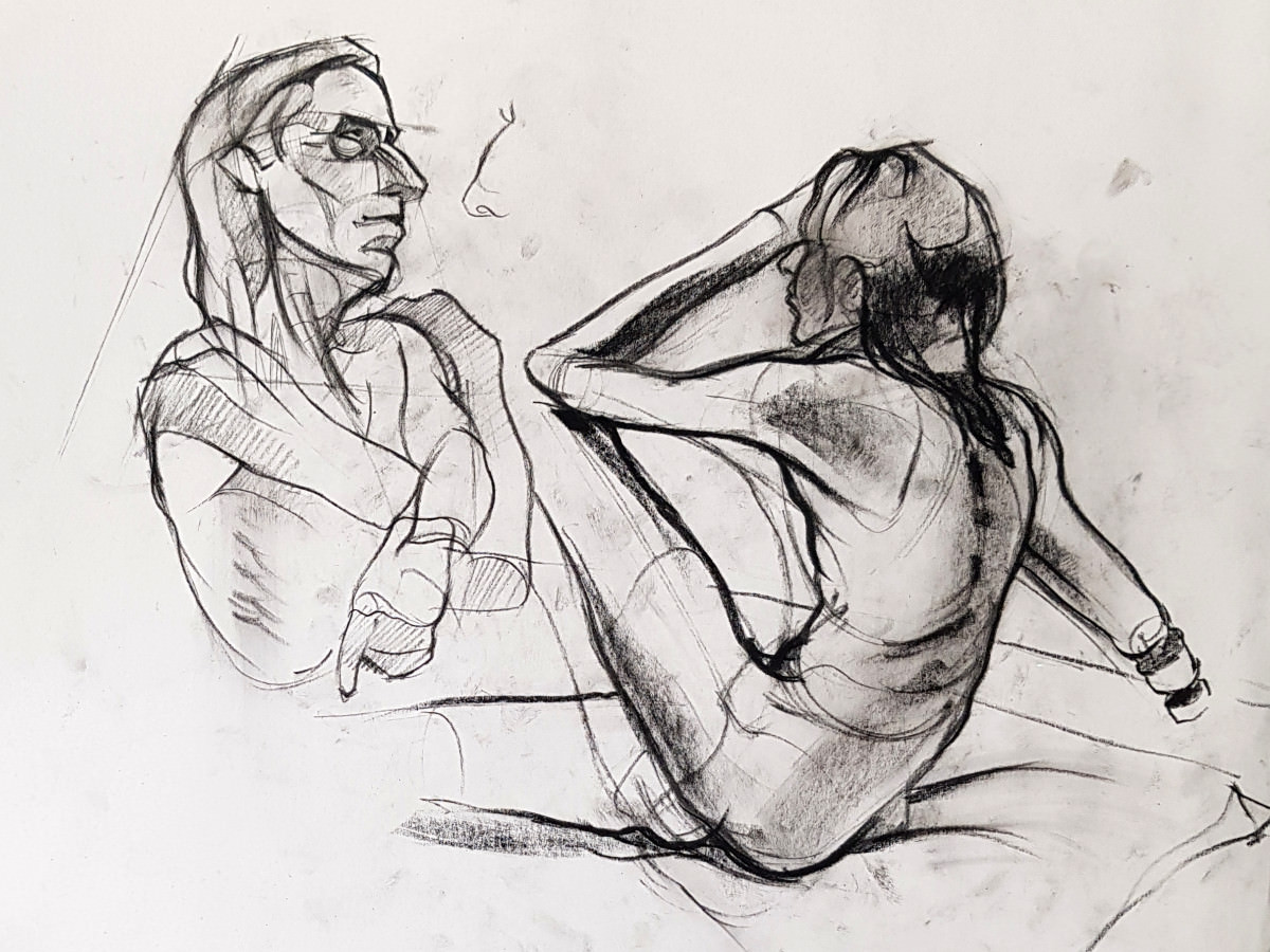 This remains the only group I know that offers free, freshly cooked hot food for model and artists alike at the interval. After a delicious bowl of dhal we resumed our art with five more 1-minute poses – to get everybody re-energised – before finishing with one pose of 15 minutes and one of 20 minutes.