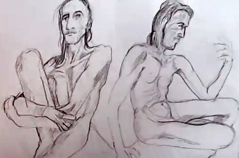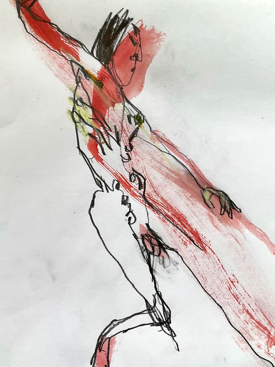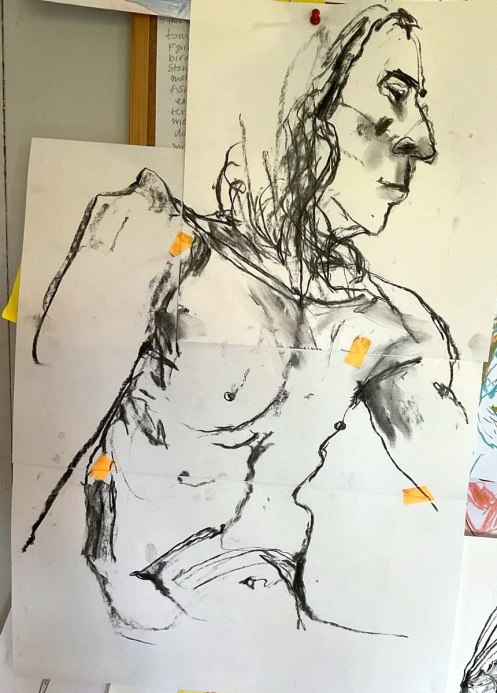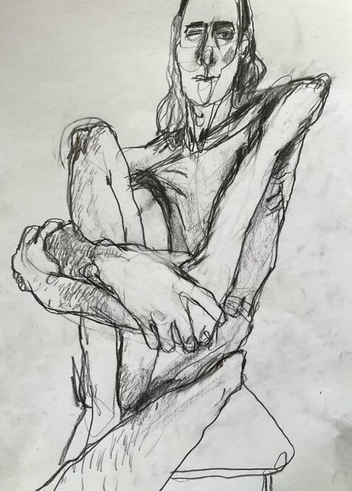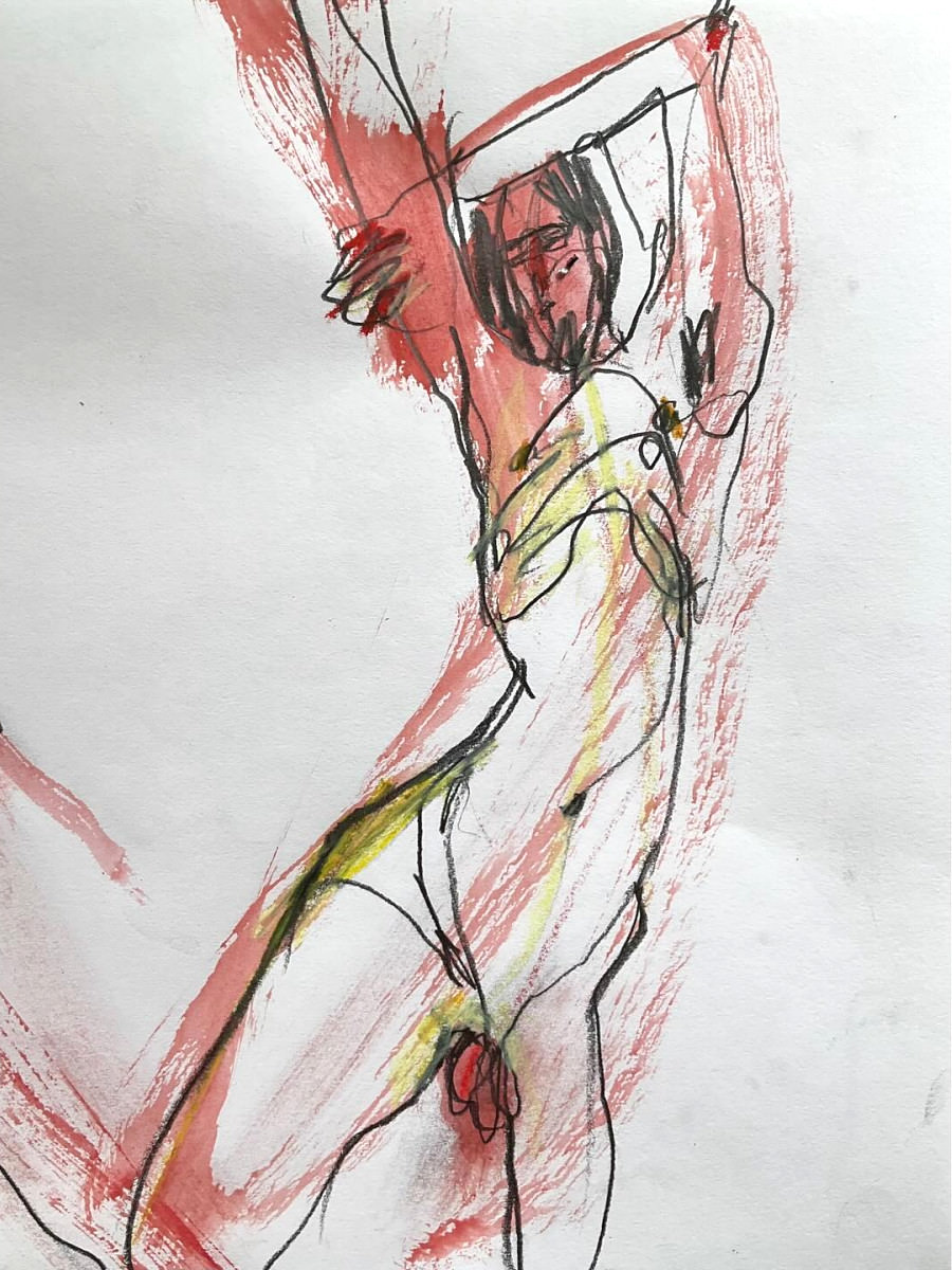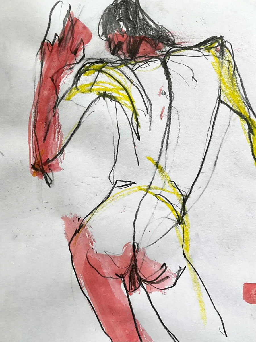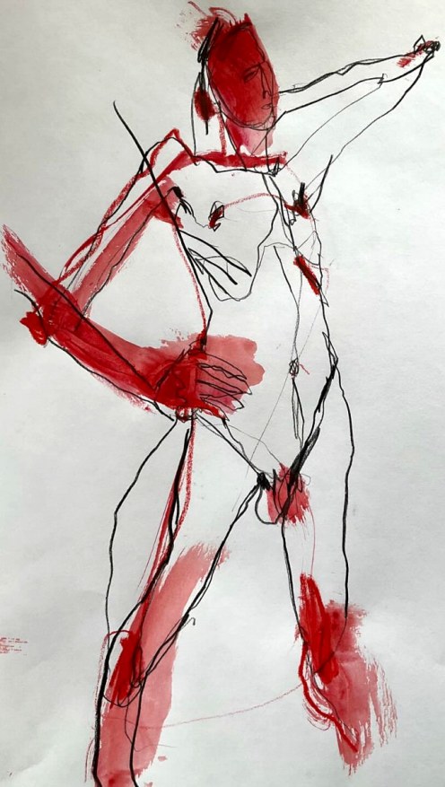 20-minute, 20-minute, and 5-minute poses brought the session to a close. There was time left to admire the artworks of anyone willing to hold them in front of their camera, after which we all quit Zoom and I was once more alone… as I had been all along. It’s still a curious practice for me, but I’m increasingly loving it and hope to do more.