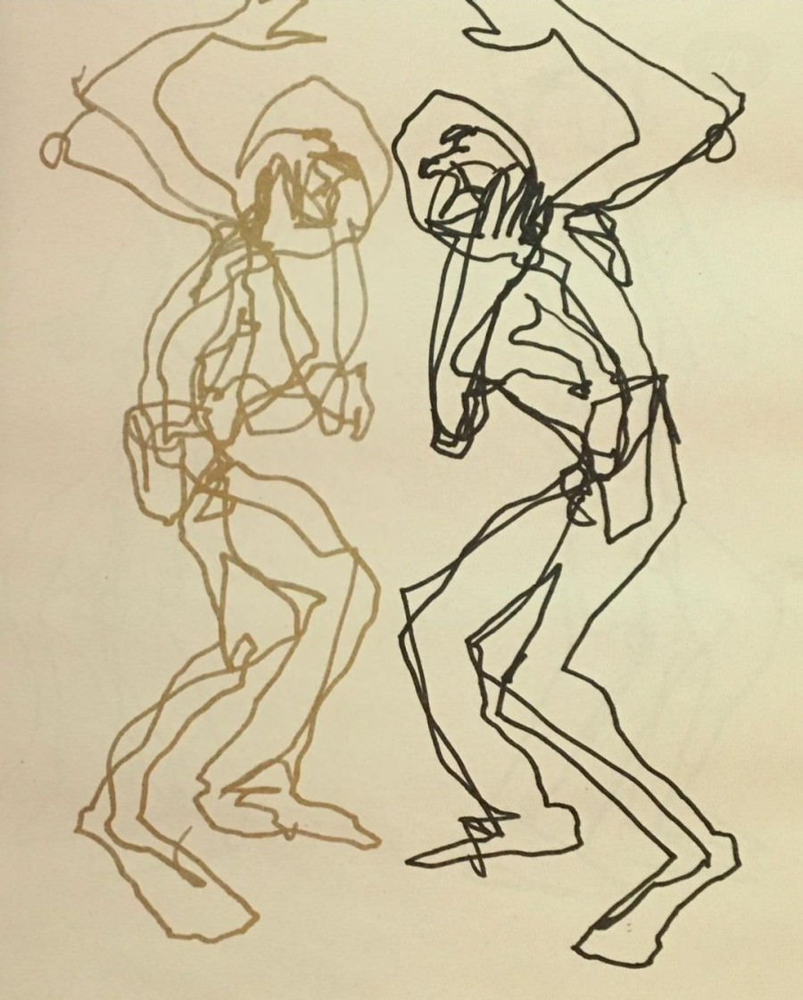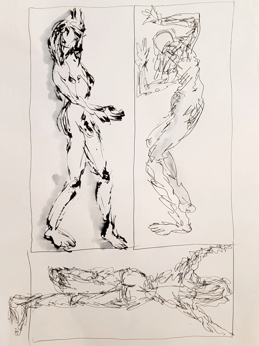 One pose of 30 minutes took us to the end. As I’d sat for the only two previous poses longer than 120 seconds, I felt the least I could do was stay on my feet, albeit without the natty footwear. Meanwhile, Josie circled the room offering advice wherever it was welcome. This is a nice appreciative subterranean art community. I fitted right in. 🙂