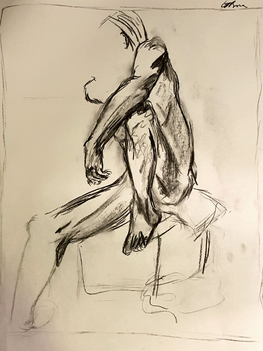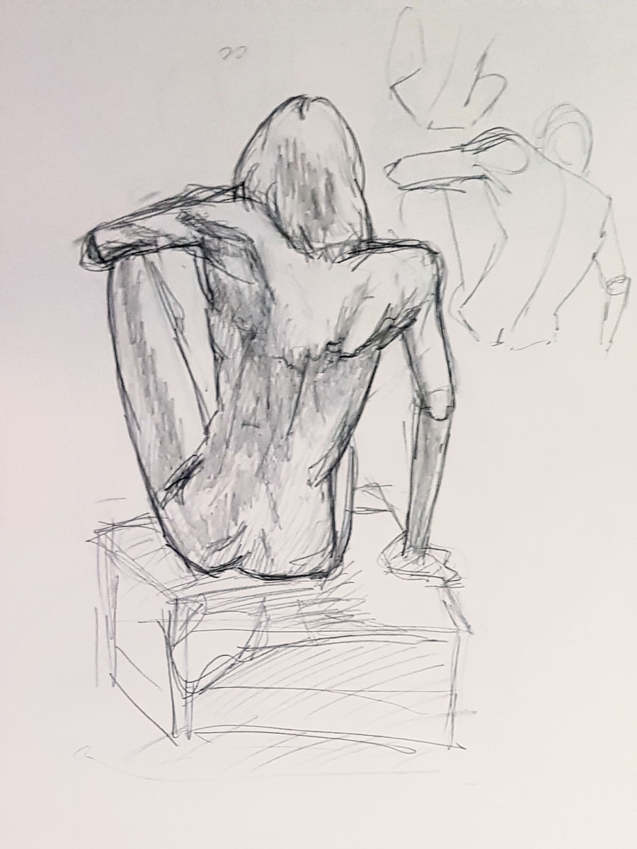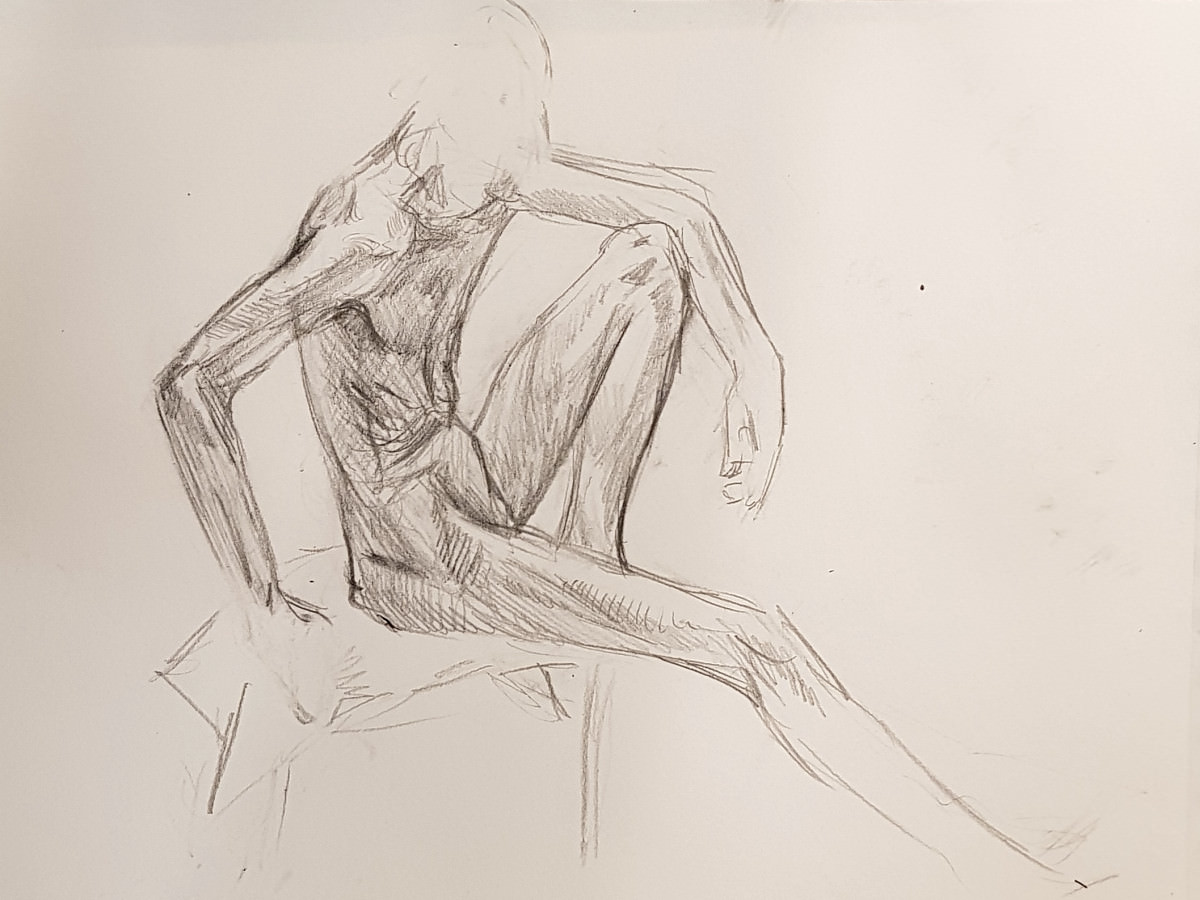 It’s an inspiring space to work within: quirky and cosy rather than claustrophobic. As I had the ceiling so readily at hand I made a point of connecting with it in various ways for my opening five poses, all of which lasted 2 minutes. After these I afforded myself more headroom by sitting for the next two 20-minute poses.