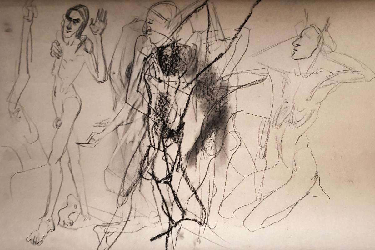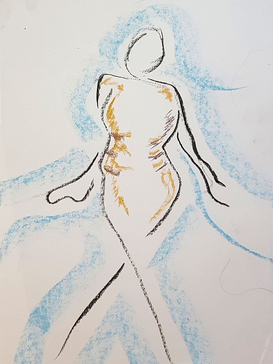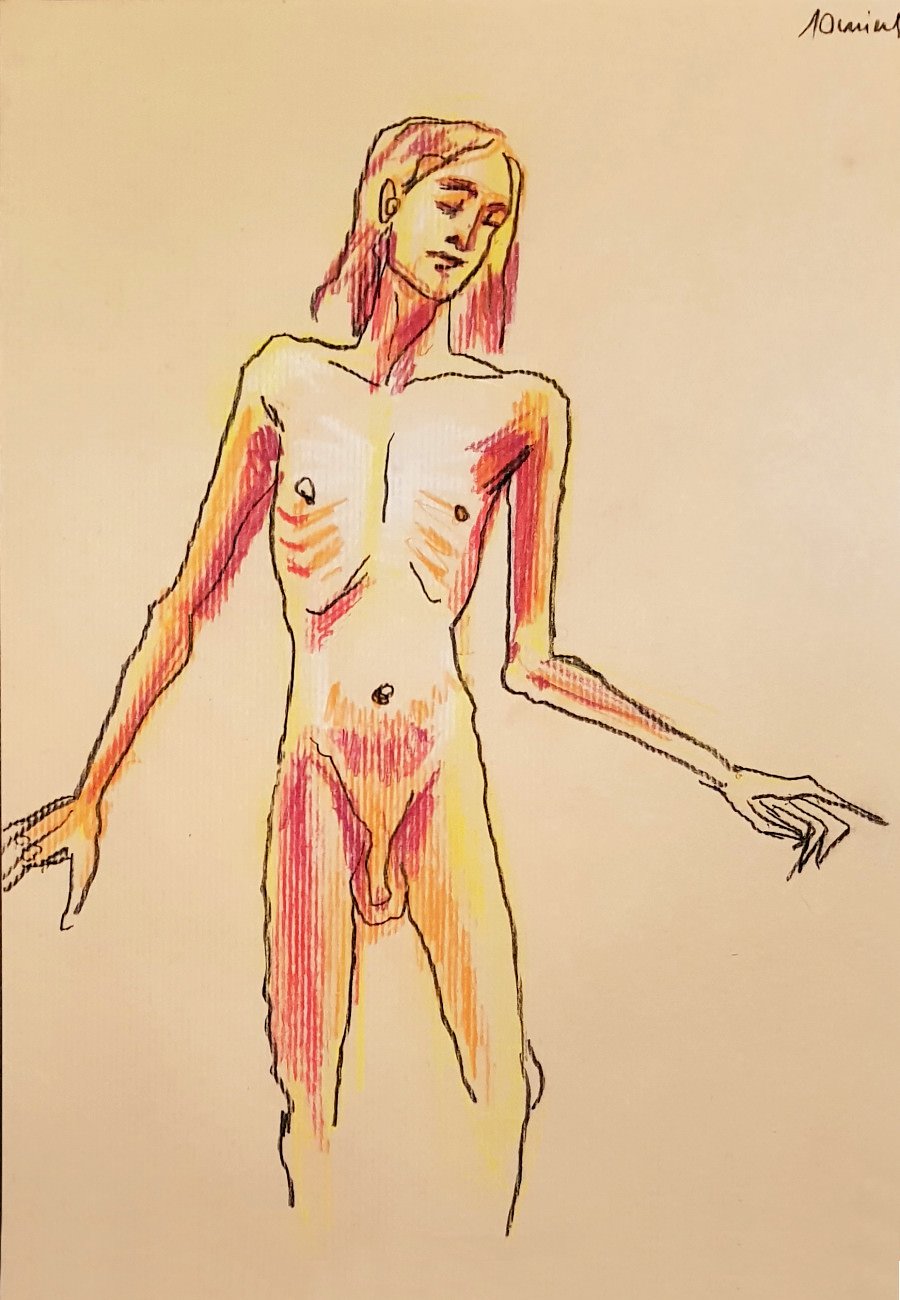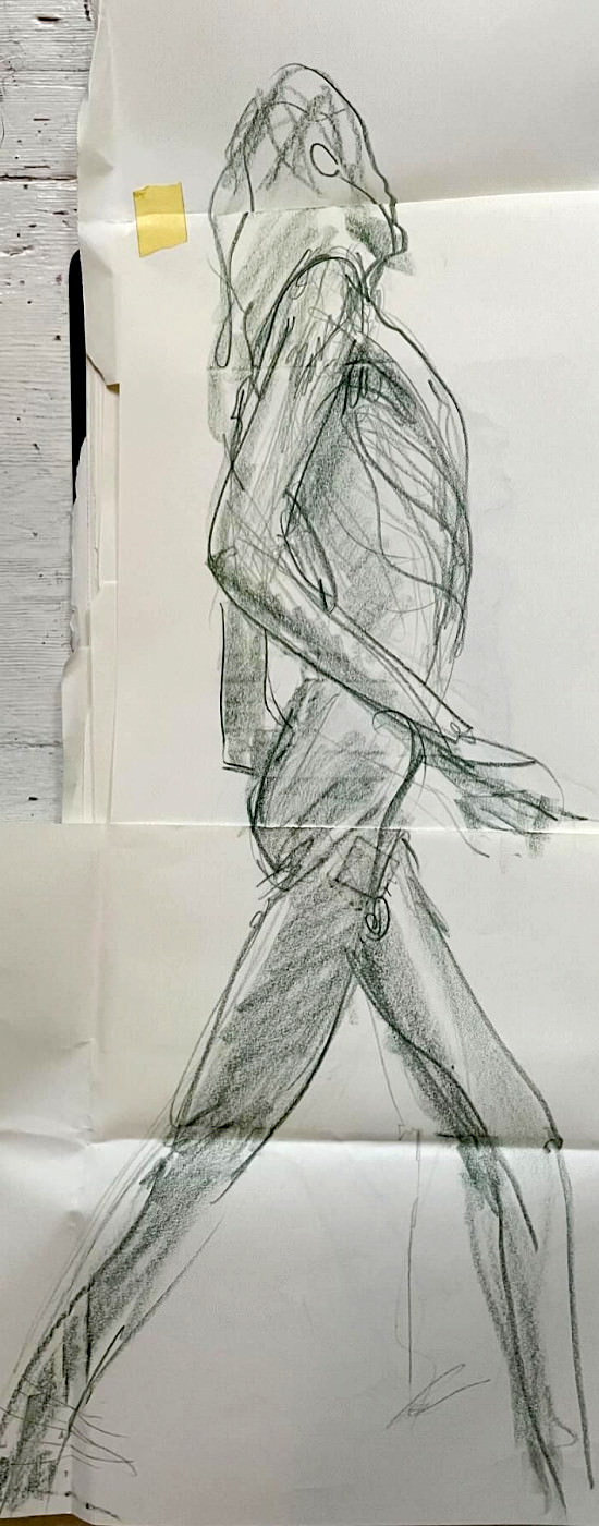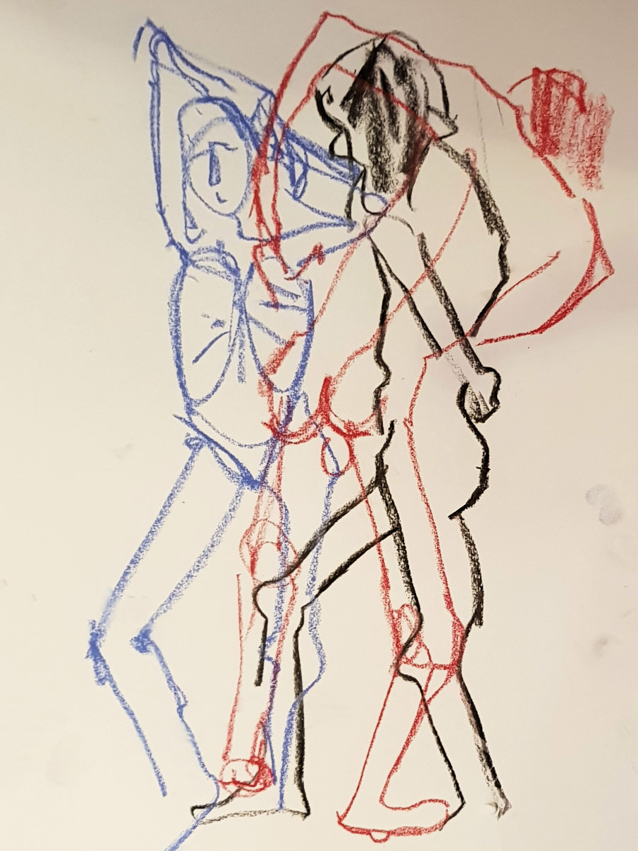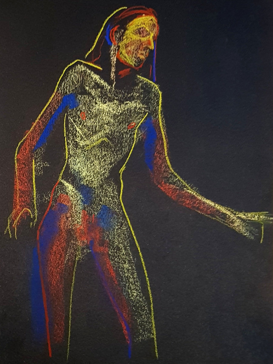 I’ve met many other talented artists during my thirty previous sessions as a life model in this space. People come and people go, but pacey poses, peppy playlists, passion for art, provision for all, plus a hint of Hackney hipness, make every occasion special. We started as always: poses of 5, 4, 3, 2, 1, 1, 1, half, half, half, 10 and 10 minutes.