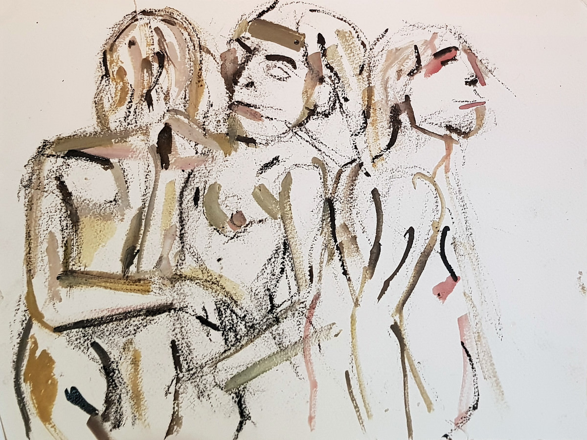 After a break and a casting of votes it was decided the last half-hour would see three more 10-minute poses. I’d misread the signs as I felt sure they would be in the mood for one 30-minute long pose; but 10-minuters were fine by me. Happy days. And now more to follow… a trip to model in Folkestone for Farida is already confirmed.