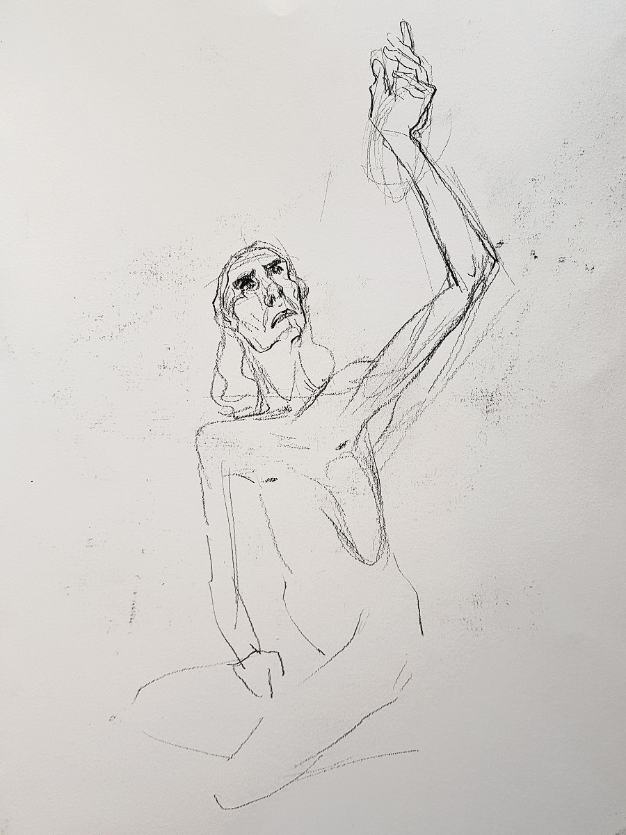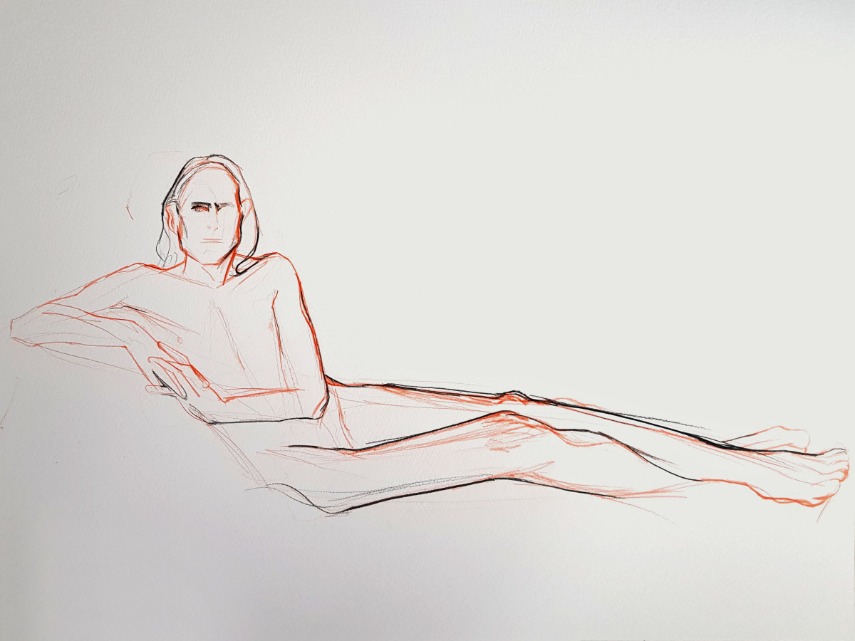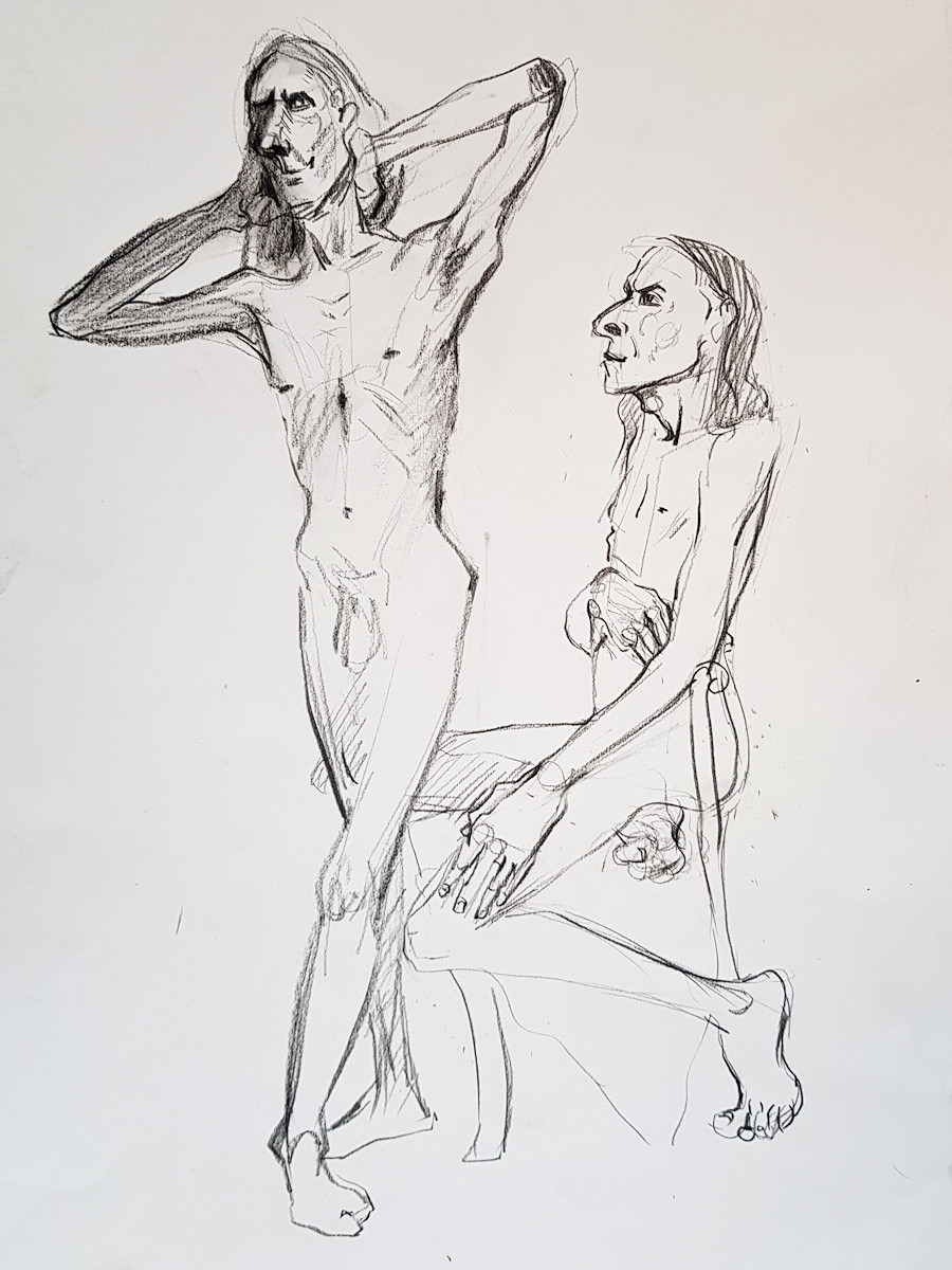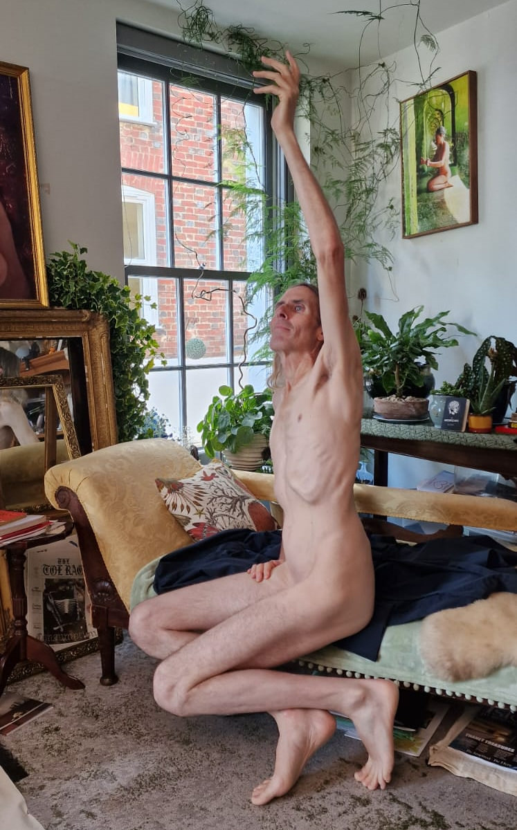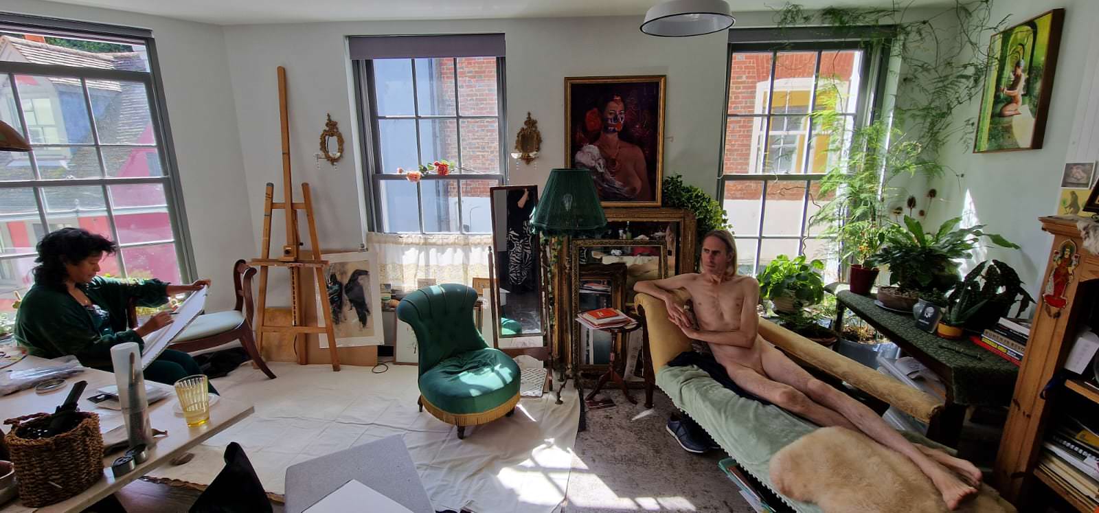Three weeks after I’d modelled for Catherine Hall and Farida Yesmin at a private life drawing session in Margate, the three of us reunited for another artistic collaboration. This time we were in Folkestone, hosted by Farida. Previously we’d worked outdoors with poses of 10 to 15 minutes, but here we would be inside for longer poses.