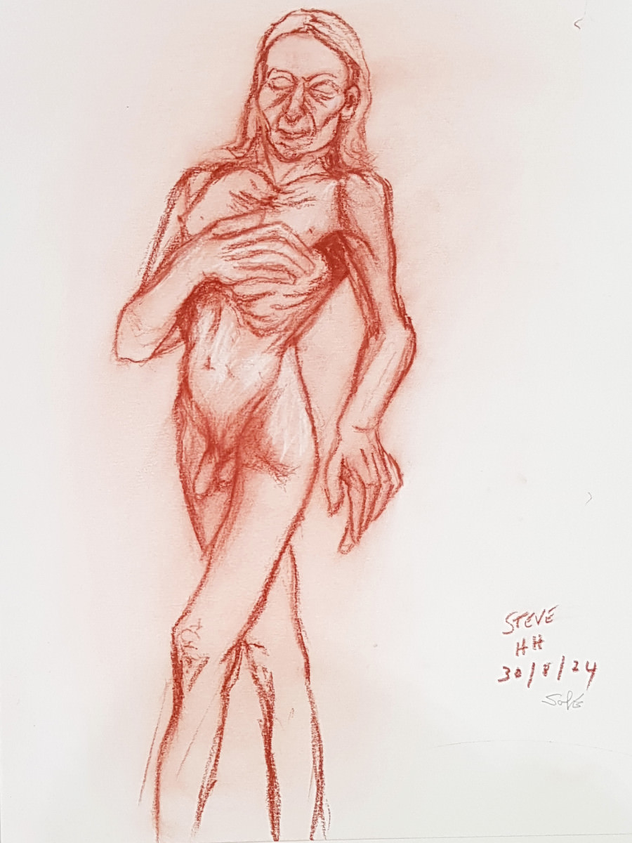 By the time I arrived, artists had settled into drawing short, medium and portrait pose models. I was immensely grateful that any opted to relocate and draw me: two at the outset, another four after the first half-hour medium pose, and one more later.