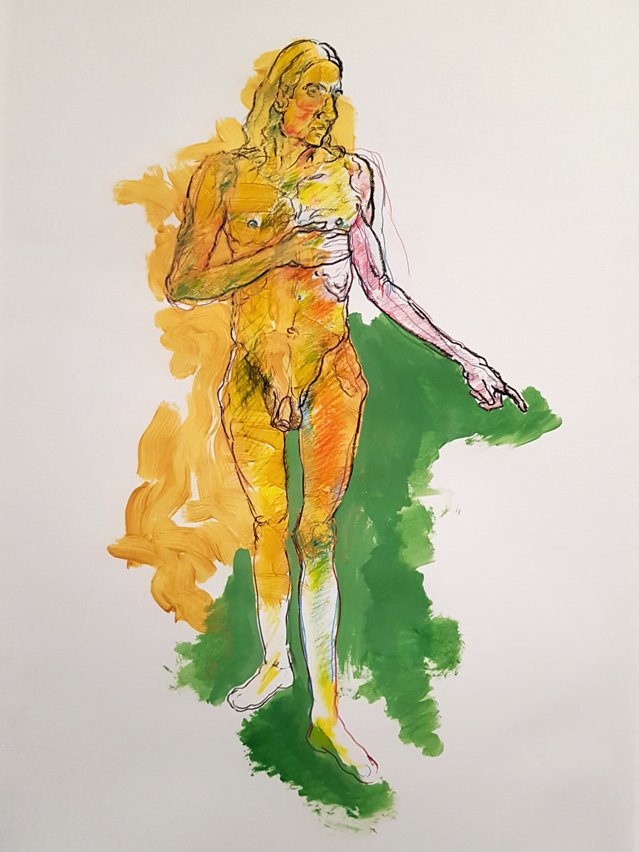 At the time of being booked I’d offered to stand for this pose. Usually models choose to lay down but, having rocked up late, there was more reason for me to go the extra mile. I stood for 40 minutes to begin; waiting 30 before shaking out my numbness.
