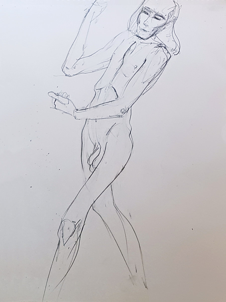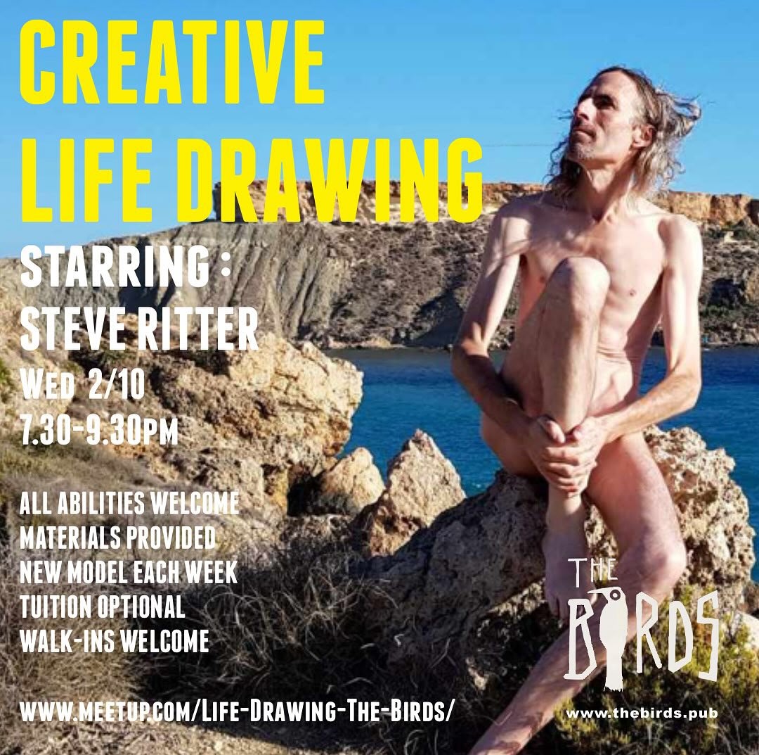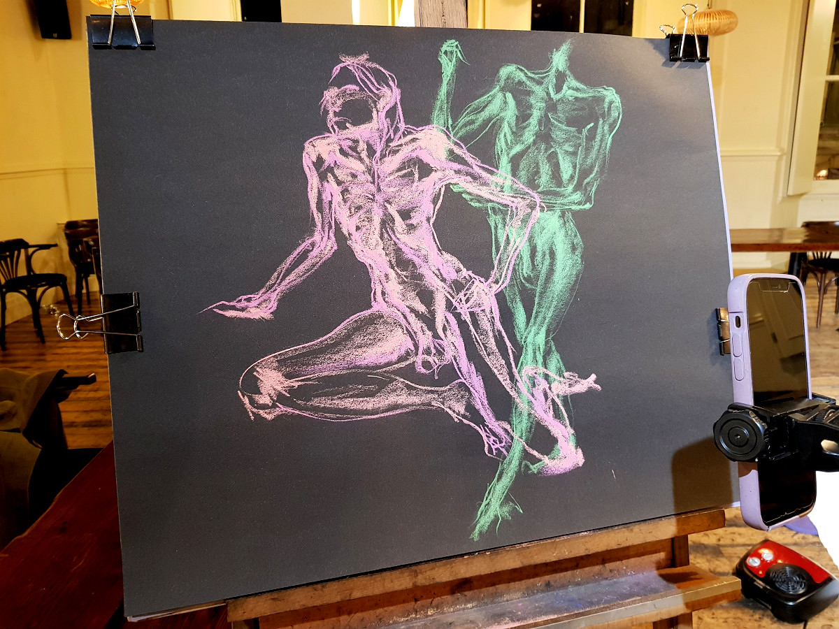 Having arrived well early for this Leytonstone Life Drawing session at The Birds, I was able to be a bit useful by helping with preparations. Organiser Jennifer Wolf has an eye for detail, especially when it comes to lighting a pose space.