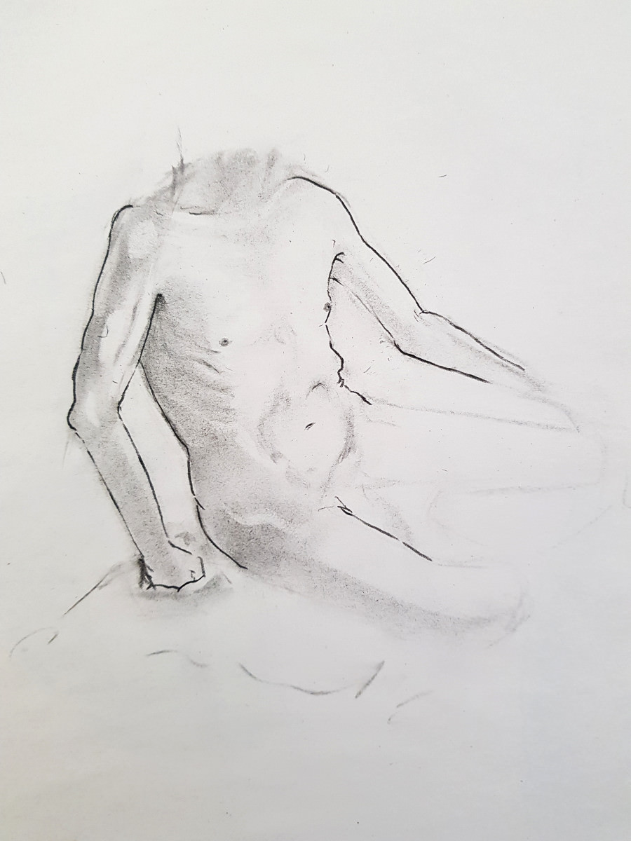The first hour was for short poses that ranged in length from 5 minutes to 15 minutes. Next, after a tea break we would have a single long pose of about an hour and a half. After half an hour, artists wearing jumpers and cardigans started complaining: “it’s so stuffy in here…”