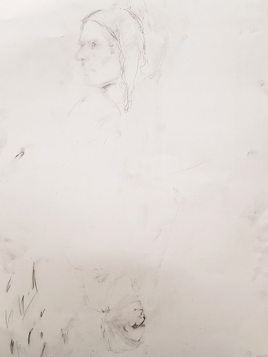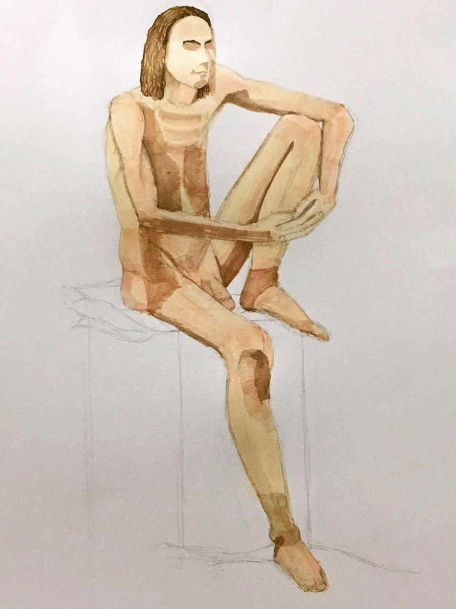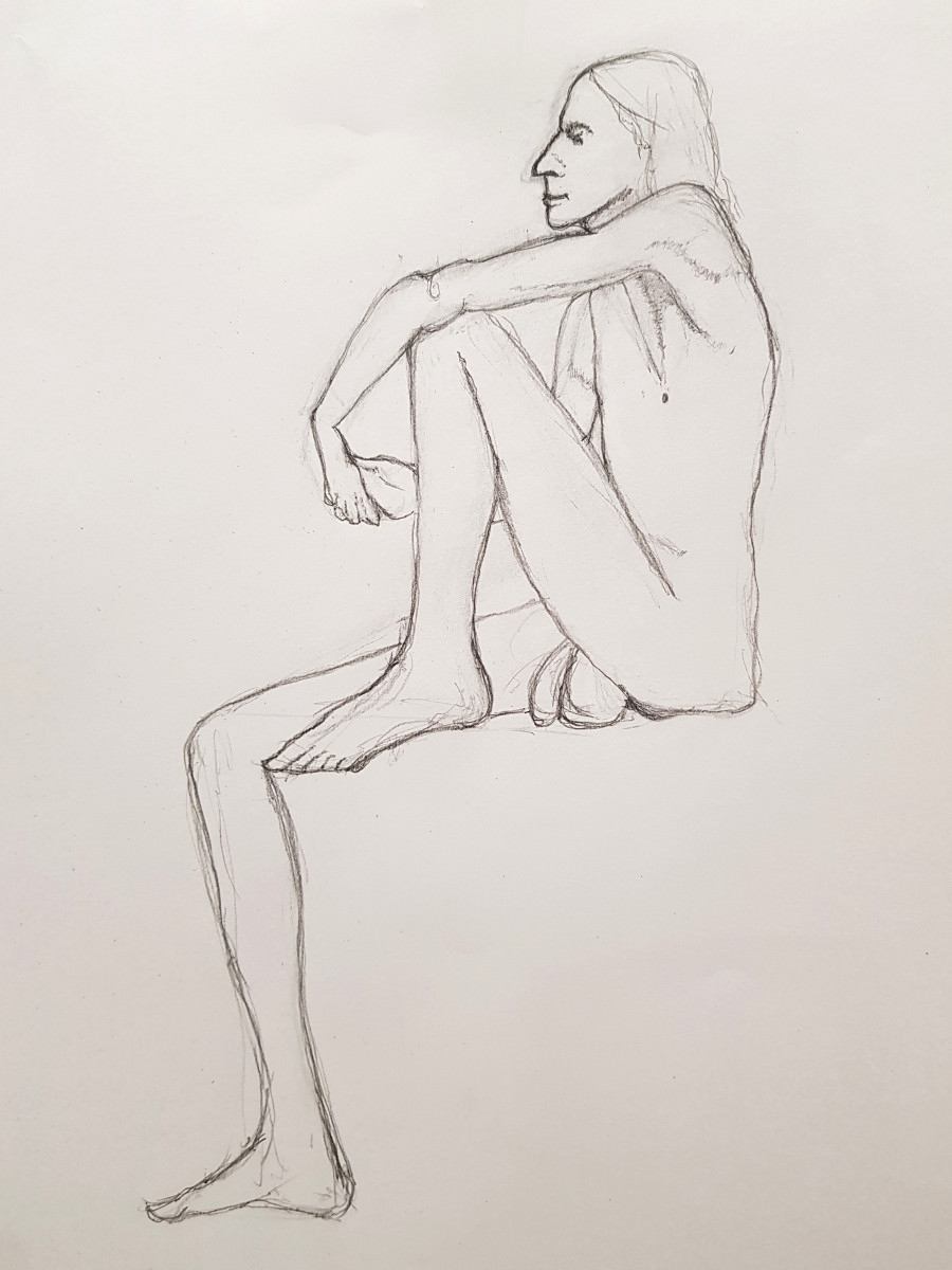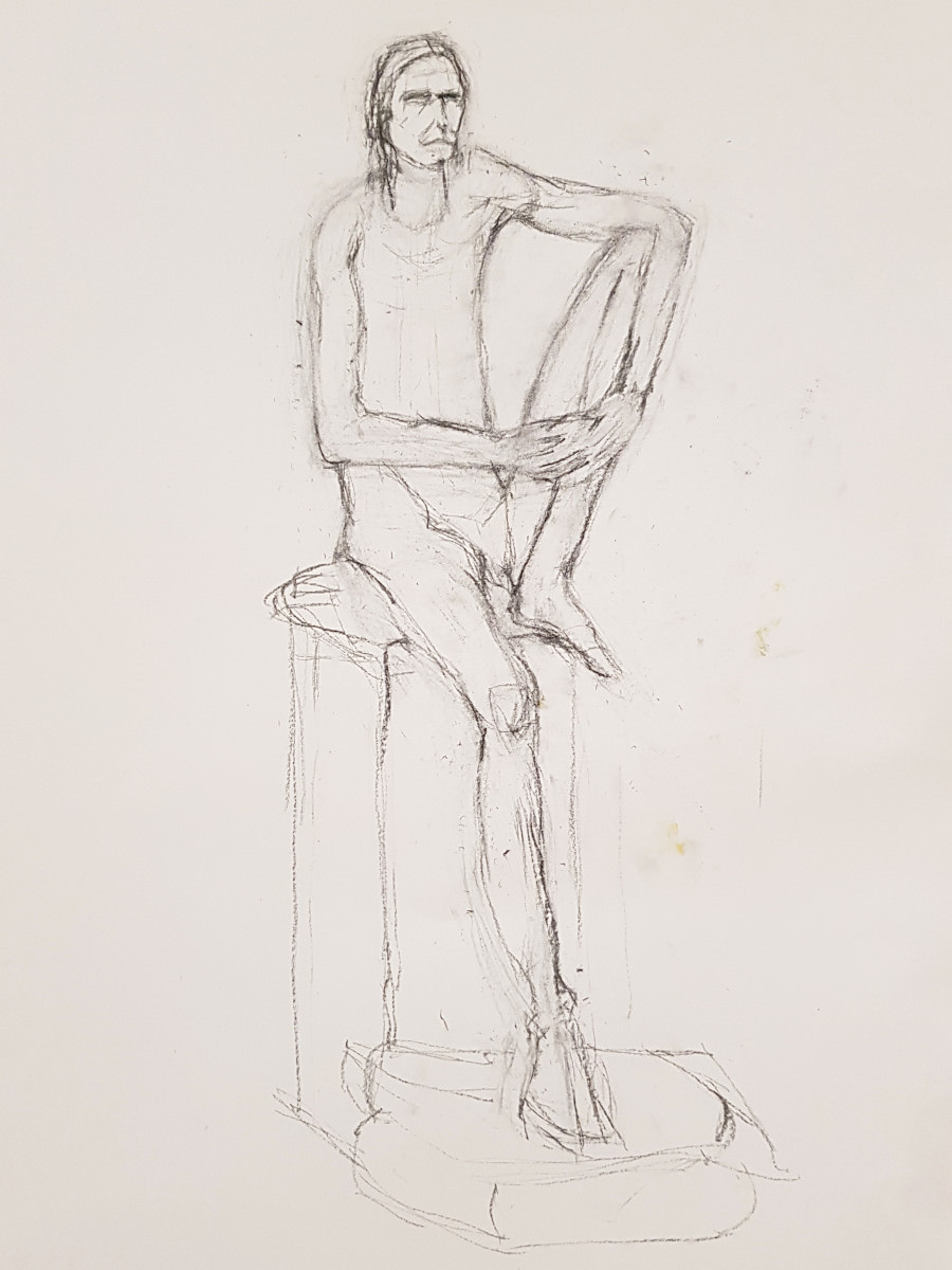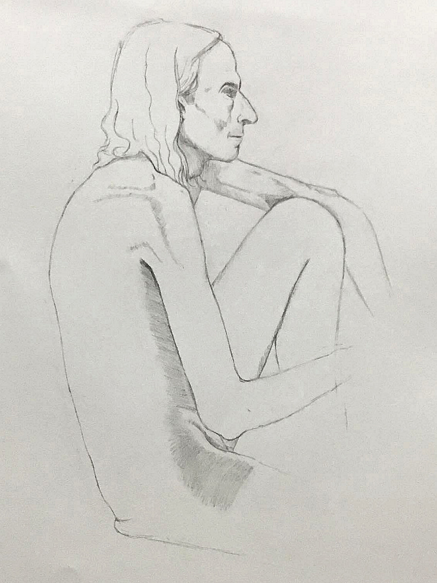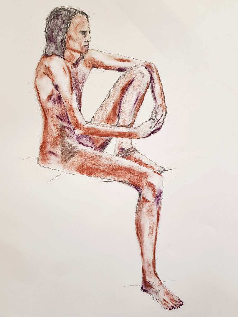 Upon resuming we had great difficulty recreating the pose to everybody’s satisfaction based on their drawings up to that point. Note to self: when commencing a long pose with complex positioning, make sure a reference photo is taken at the outset!