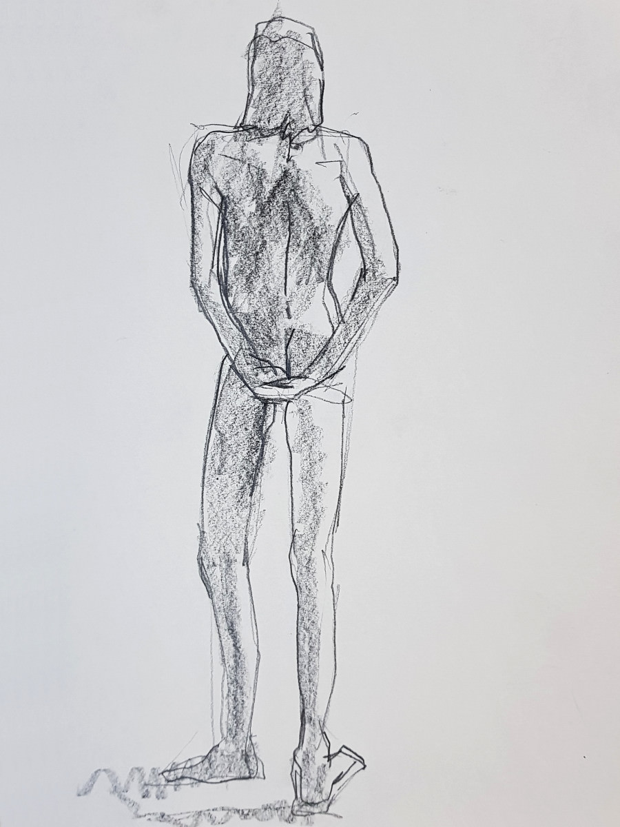 This booking for Tanner Street life drawing was my third in three successive days. The last time I’d modelled for three successive days was way back on 23, 24, and 25 February 2020. Within a month, we had the first UK COVID-19 Lockdown. It’s taken almost two and half years since the final lockdown for me to get back to this level.