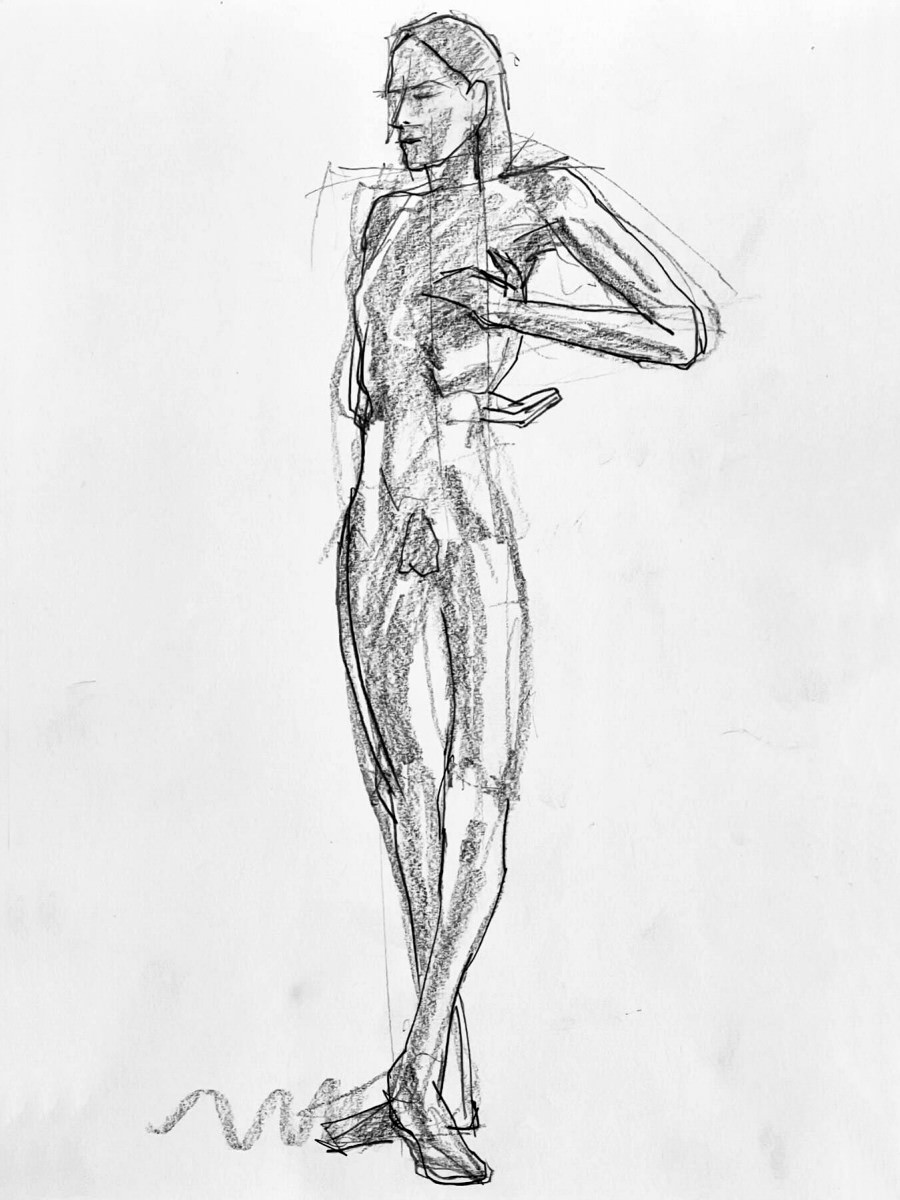 Back when I had a full-time day-job I tried not to accept too many life model bookings on successive evenings as the resulting work/life balance simply wasn’t healthy. Now I’m liberated from those shackles, however, I can be more relaxed about having a full diary. In theory, that is. It still depends on me getting any offers. 🙂
