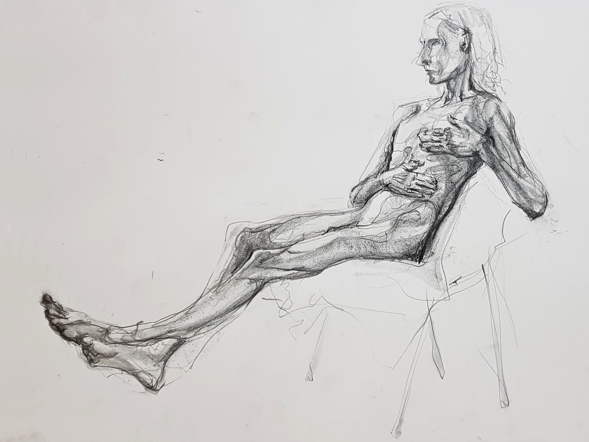 So, although I hope to increase my life modelling activities over the coming months, I also intend to keep building-in recovery breaks. Tanner Street life drawing was a nice way to finish my back-to-back evenings; great people, great space, dynamic poses in the first half, tea and biscuits, then a relatively recuperative long-pose to finish.