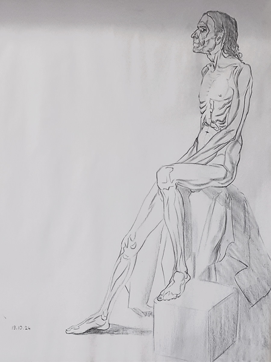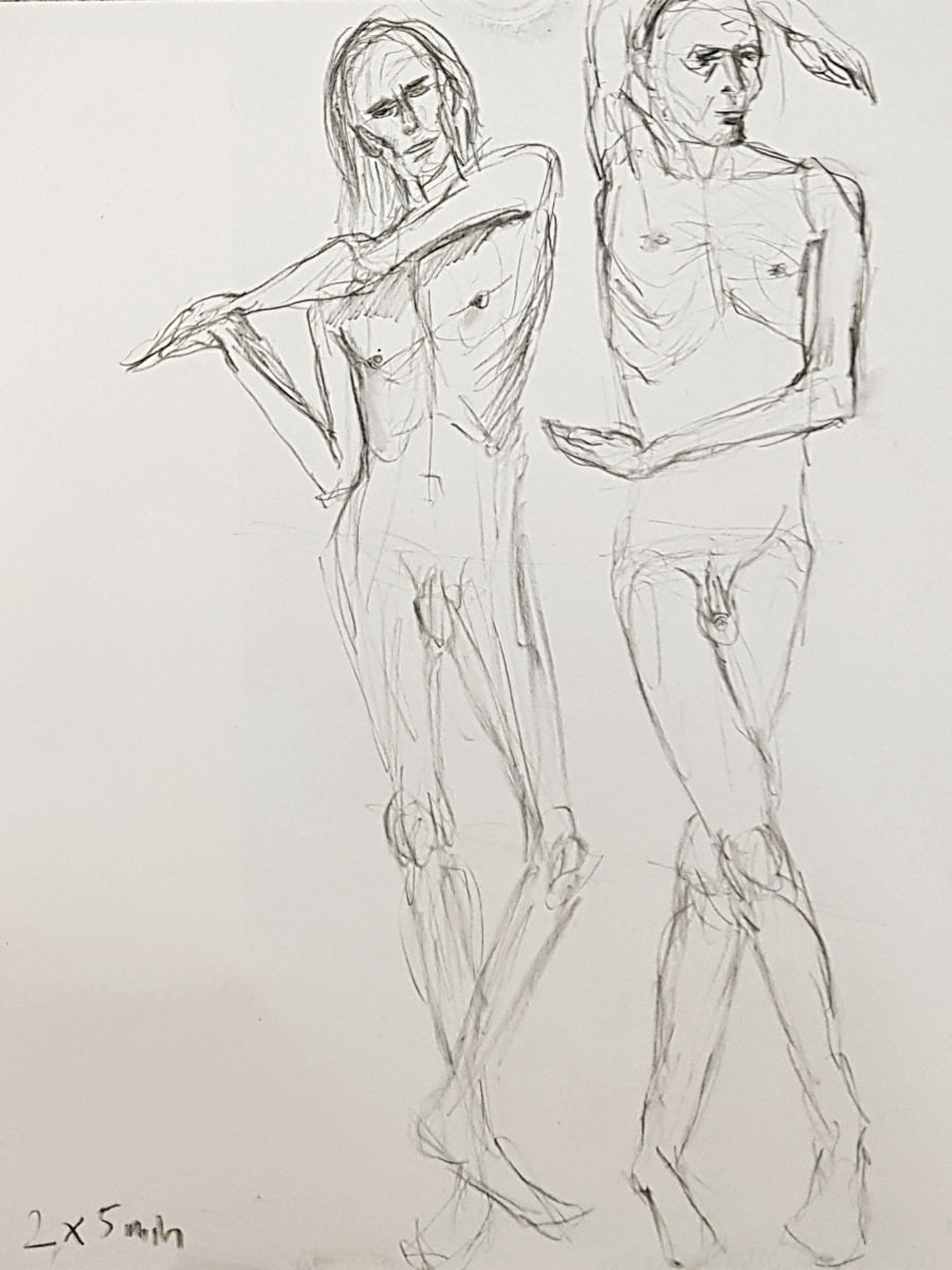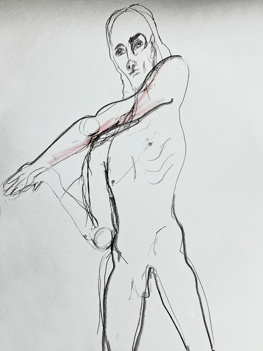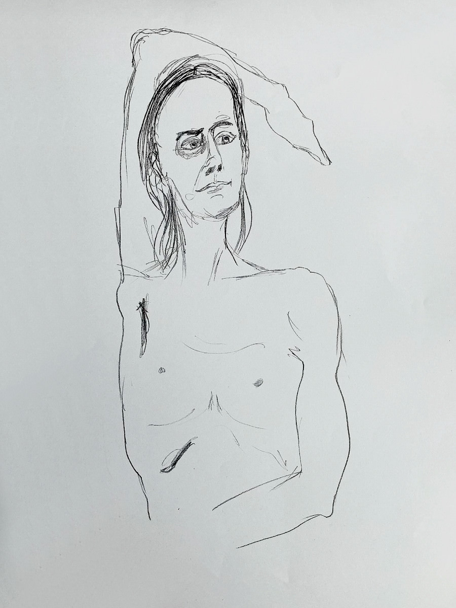 Every session at The Art of Isolation is enjoyable, and this one was no exception, but it was extra special for me as Esther was able to come and draw. It seems like years since either of us drew the other, and more than eight months since we last modelled together – though happily we now have two more duo bookings before 2024 ends. ❤