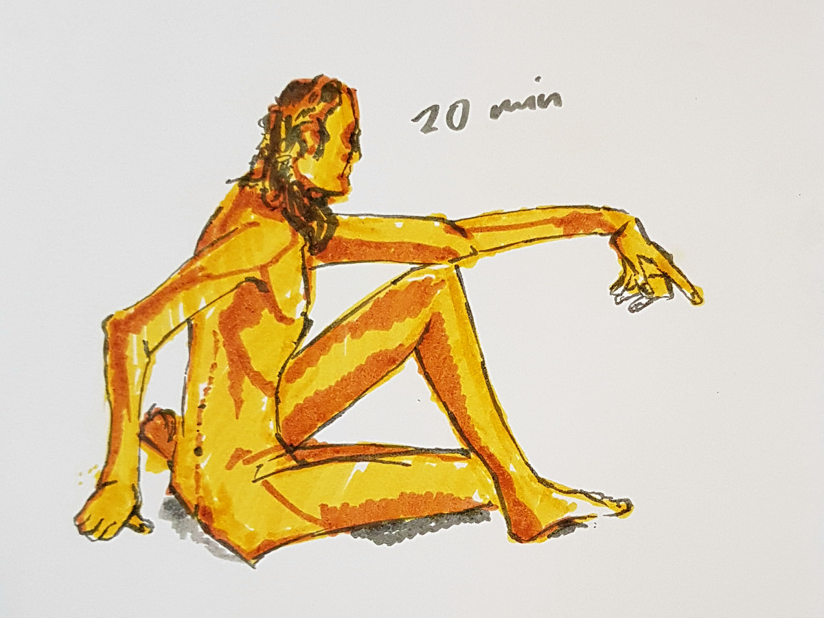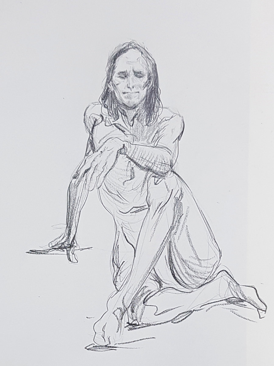 I found much was endearingly familiar: the ‘Melody Room’ space, the colourful trestle tables surrounding me, the pose times, the people. And the differences were positive, too: an extra abundance of artists attending; even the heater seemed more effective!