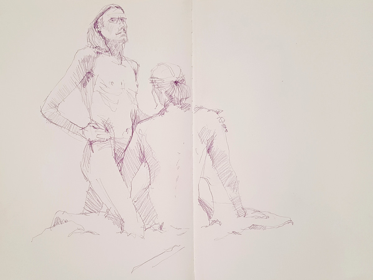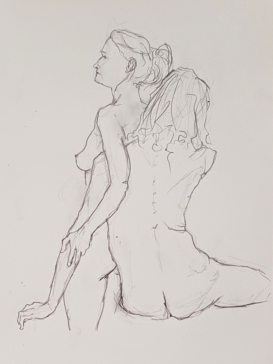 I’d accompanied them in the ambulance, waited with them in A&E, did the form-filling, made sure they were safe and their needs understood, while they themselves floated in and out of recognising me. I came straight to this life drawing from hospital visiting.