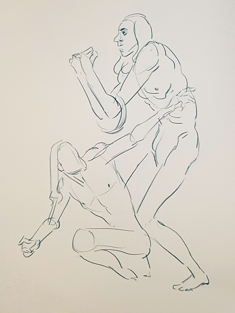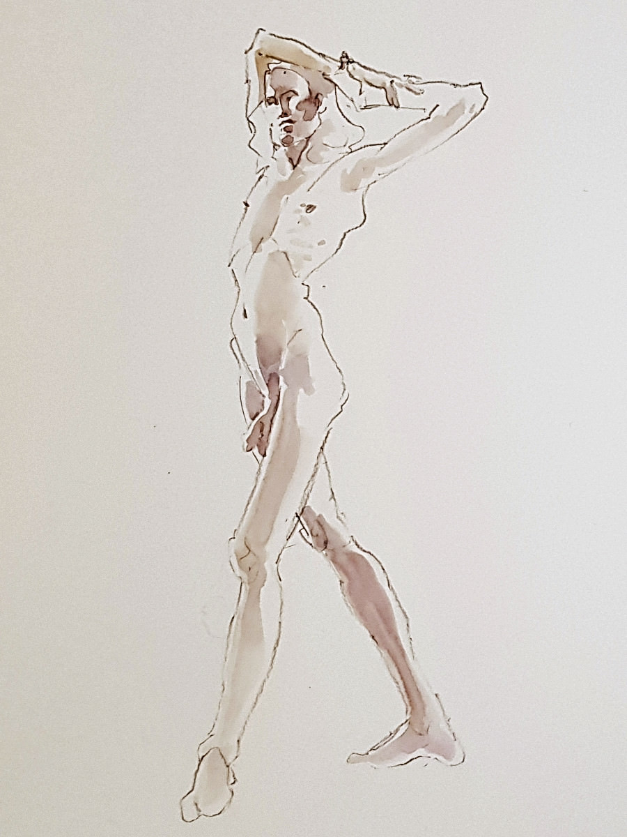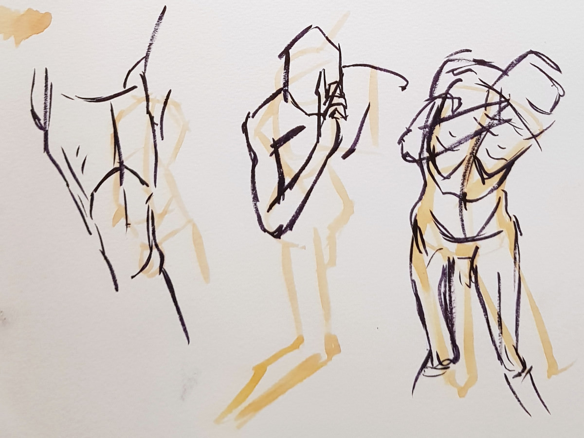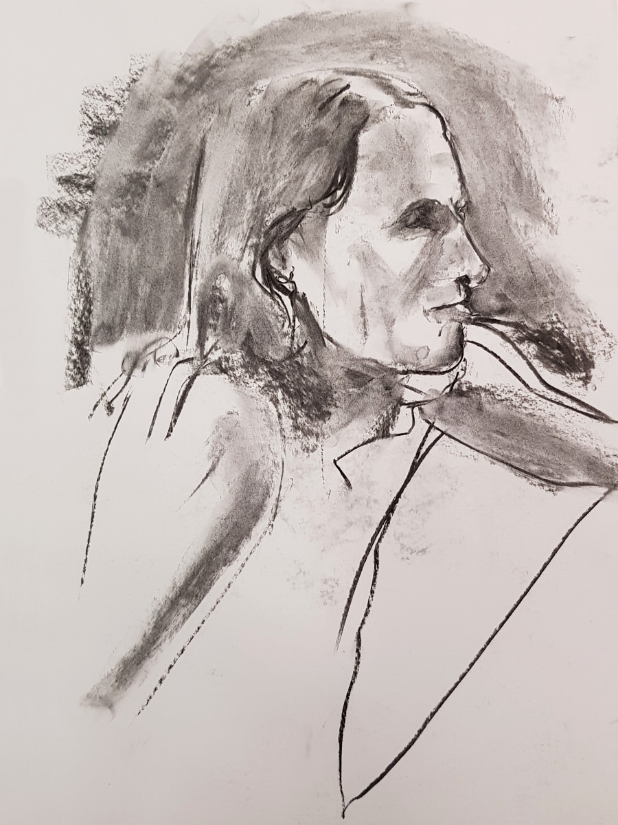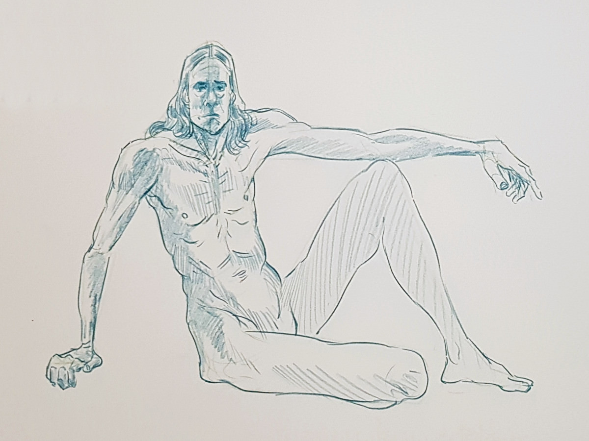 I’d been a bit under the weather going into this evening, but once we were under way my energy lifted and I felt on pretty good form. Even so, there was a poignancy about being solo after modelling here beautifully as a couple just weeks ago. I wasn’t aware of projecting sadness, yet… these are skilled artists, they saw it in the longer poses.
