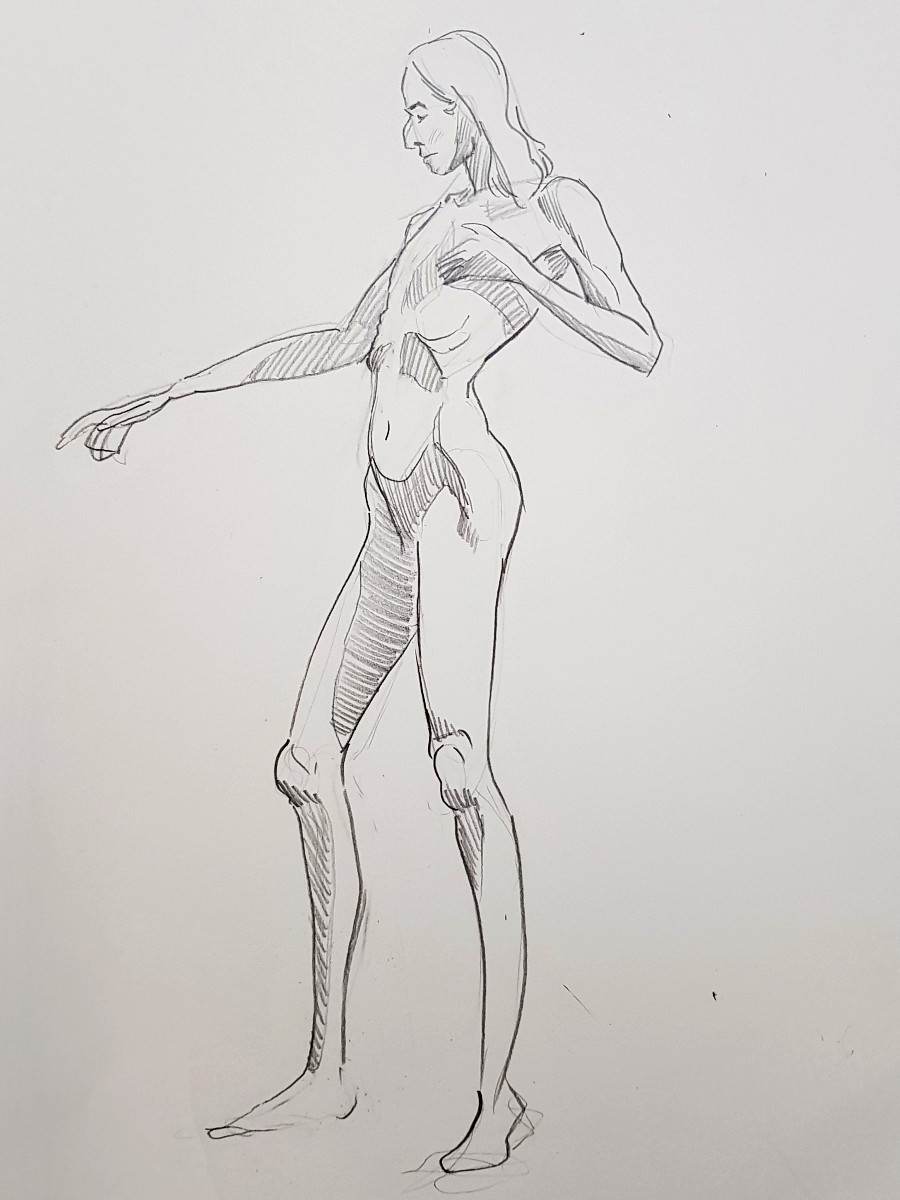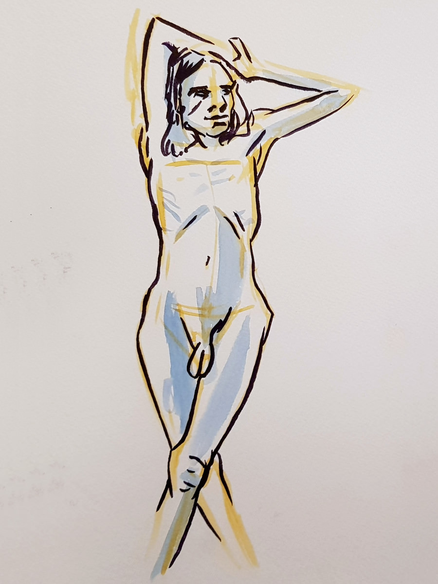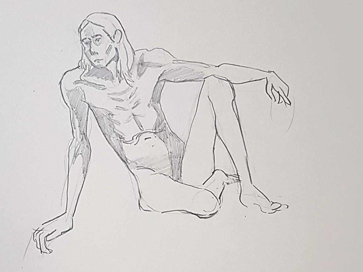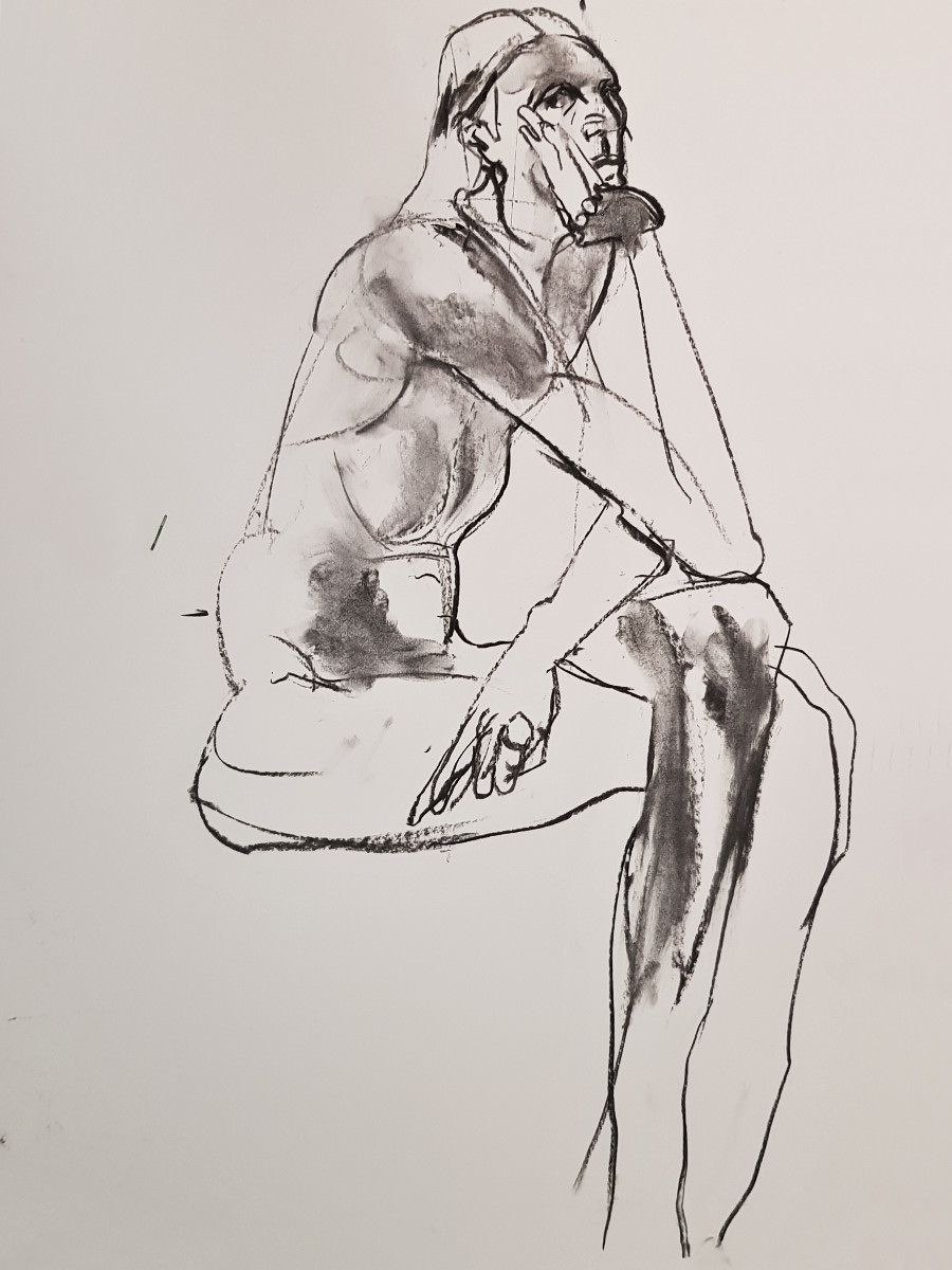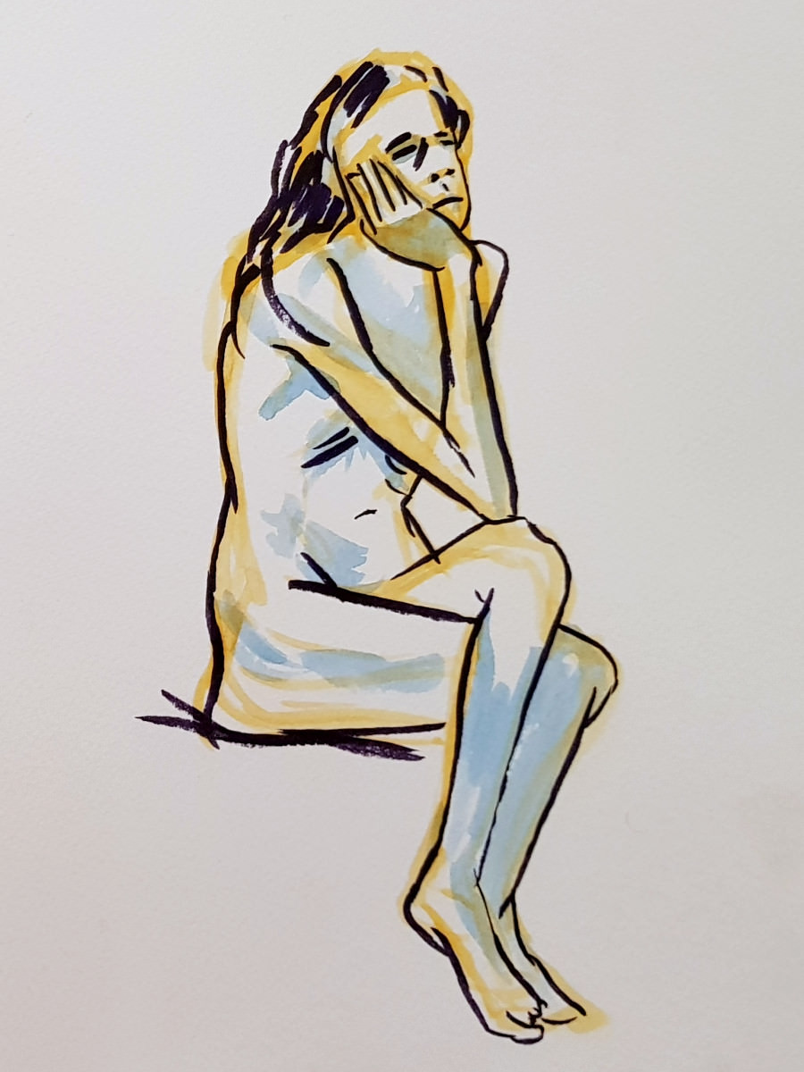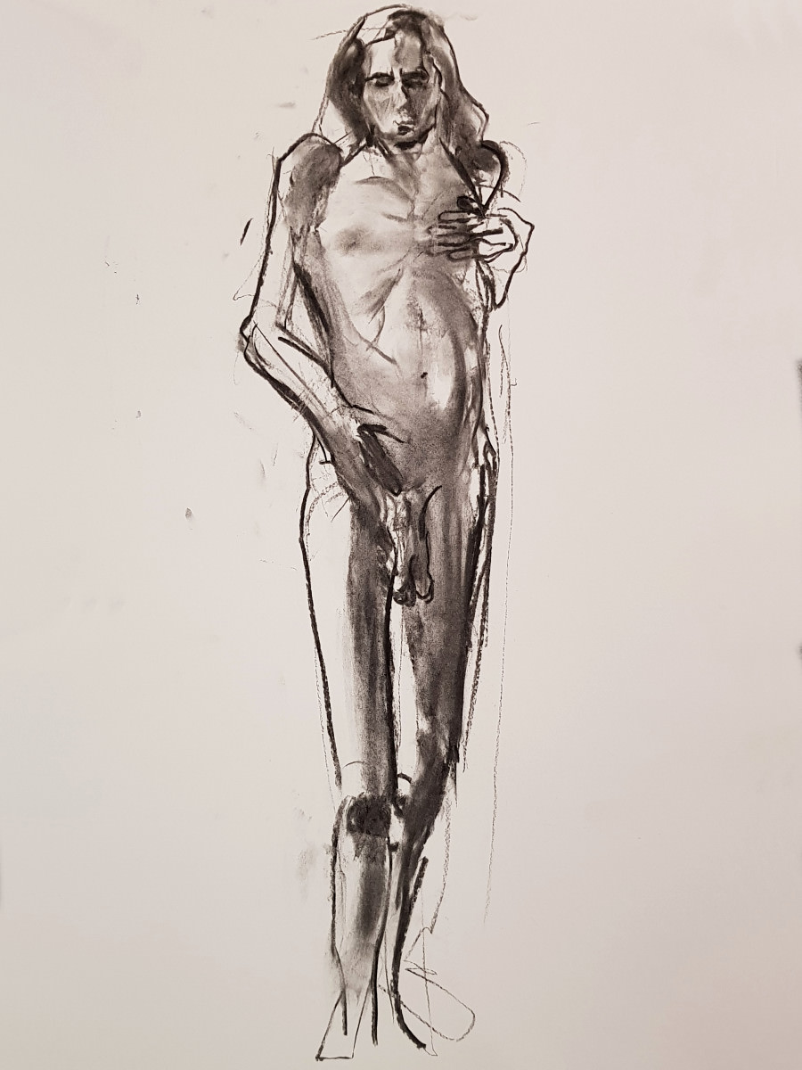 I’d been a bit under the weather going into this evening, but once we were under way my energy lifted and I felt on pretty good form. Even so, there was a poignancy about being solo after modelling here beautifully as a couple just weeks ago. I wasn’t aware of projecting sadness, yet… these are skilled artists, they saw it in the longer poses.